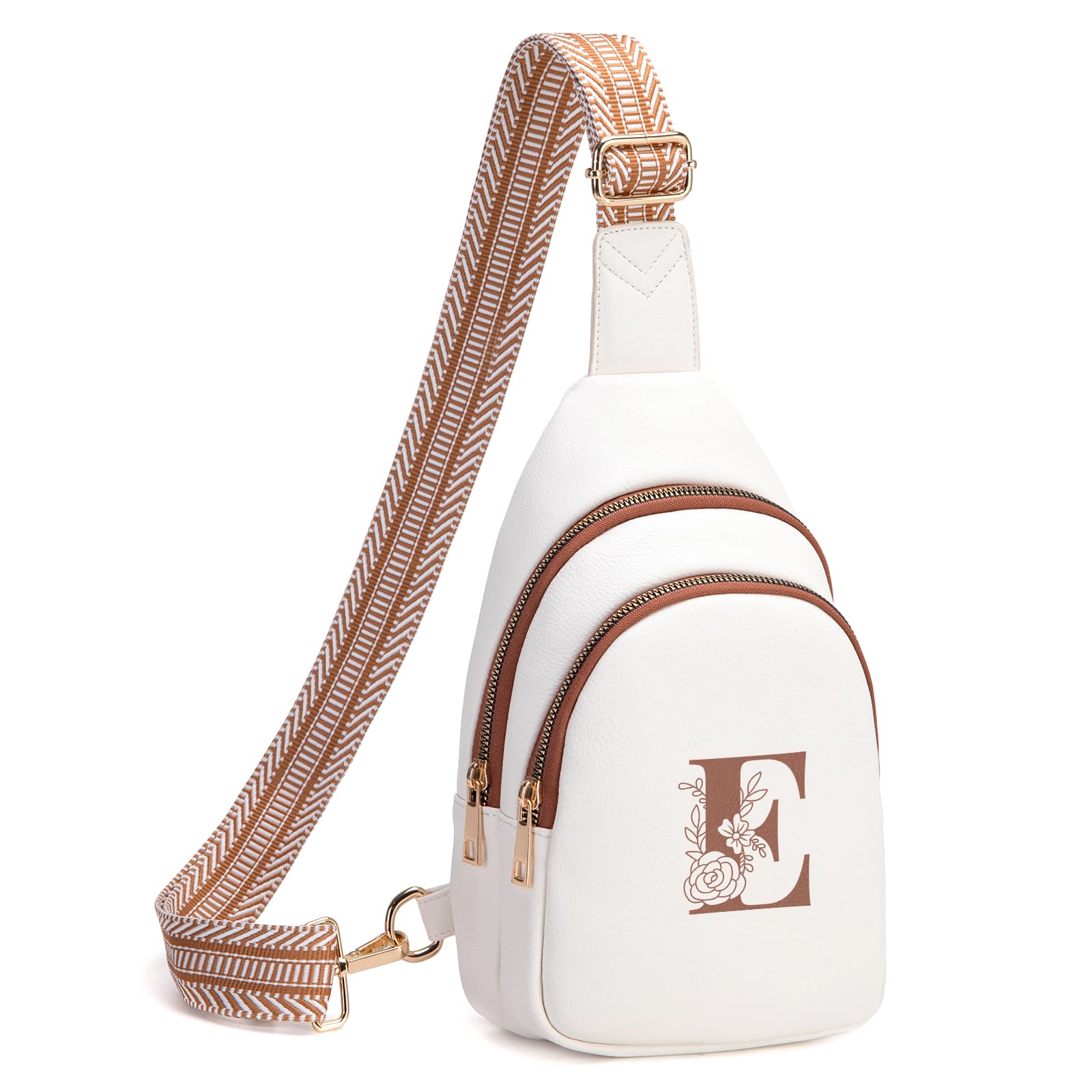 Viverte Crossbody Bags for Women Initial Sling Bag Cross Body Fanny Packs Personalized Gifts for Mom Women Wife (Beige with Brown-E)