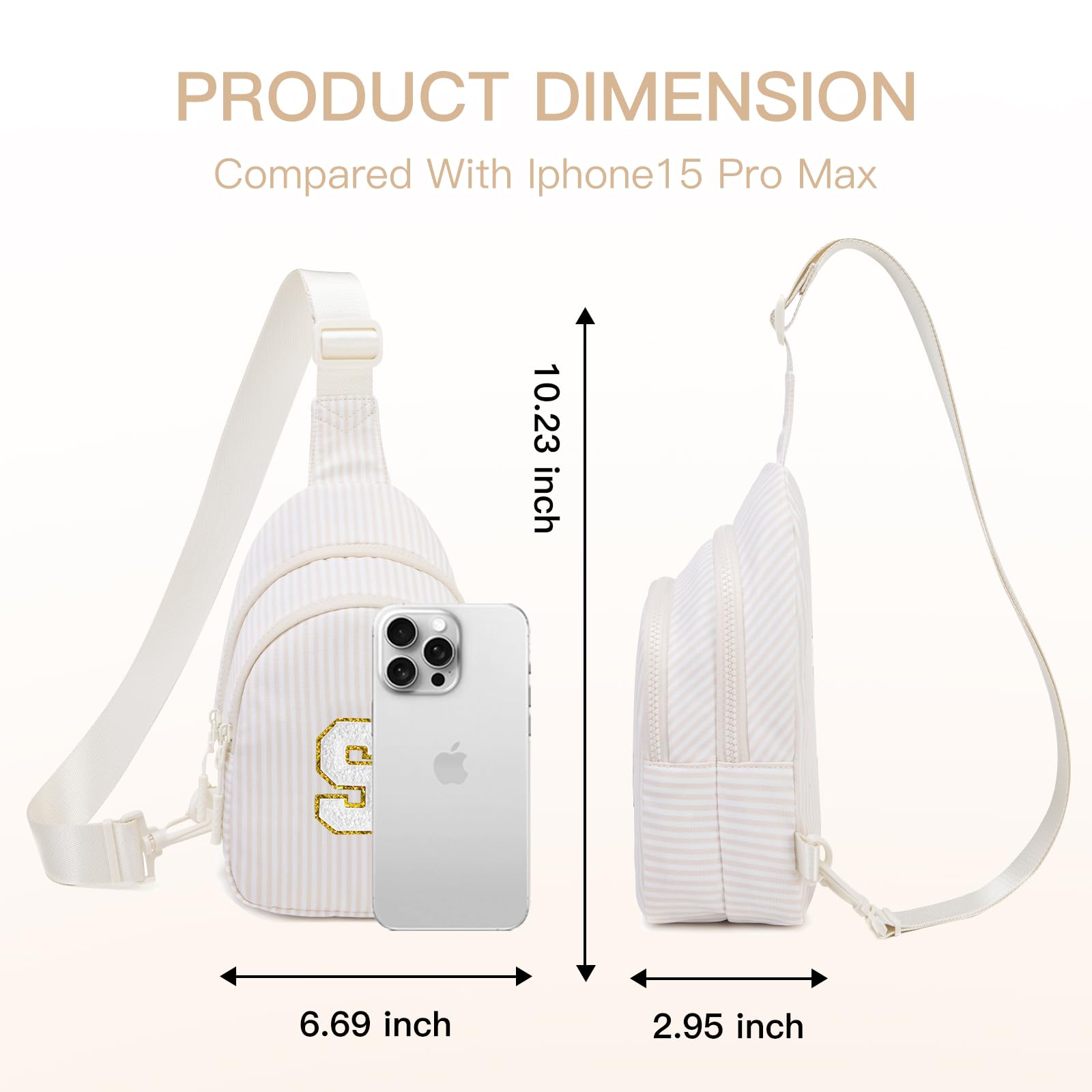 - Product Features: Dimensions: 6.69'' x 10.23'' x 2.95''(L x H x W) Strap length 28.93 to 52.97 inches. The Viverte Initial sling bag is made from high quality material (nylon). It is easy to clean and water resistant. The zips are strong and smooth. It doesn't stick after repeated use, which guarantees long-term use.