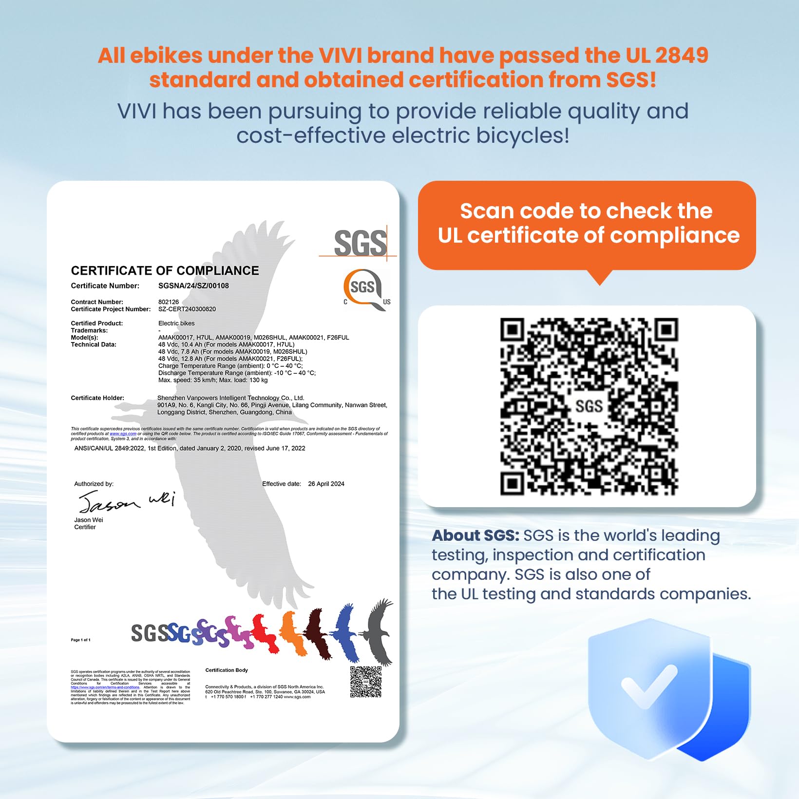 - SGS Certified to UL2849 : Ride confidently with our electric mountain bike, featuring SGS certified to UL2849 for the highest safety standards and reliable protection on every journey
