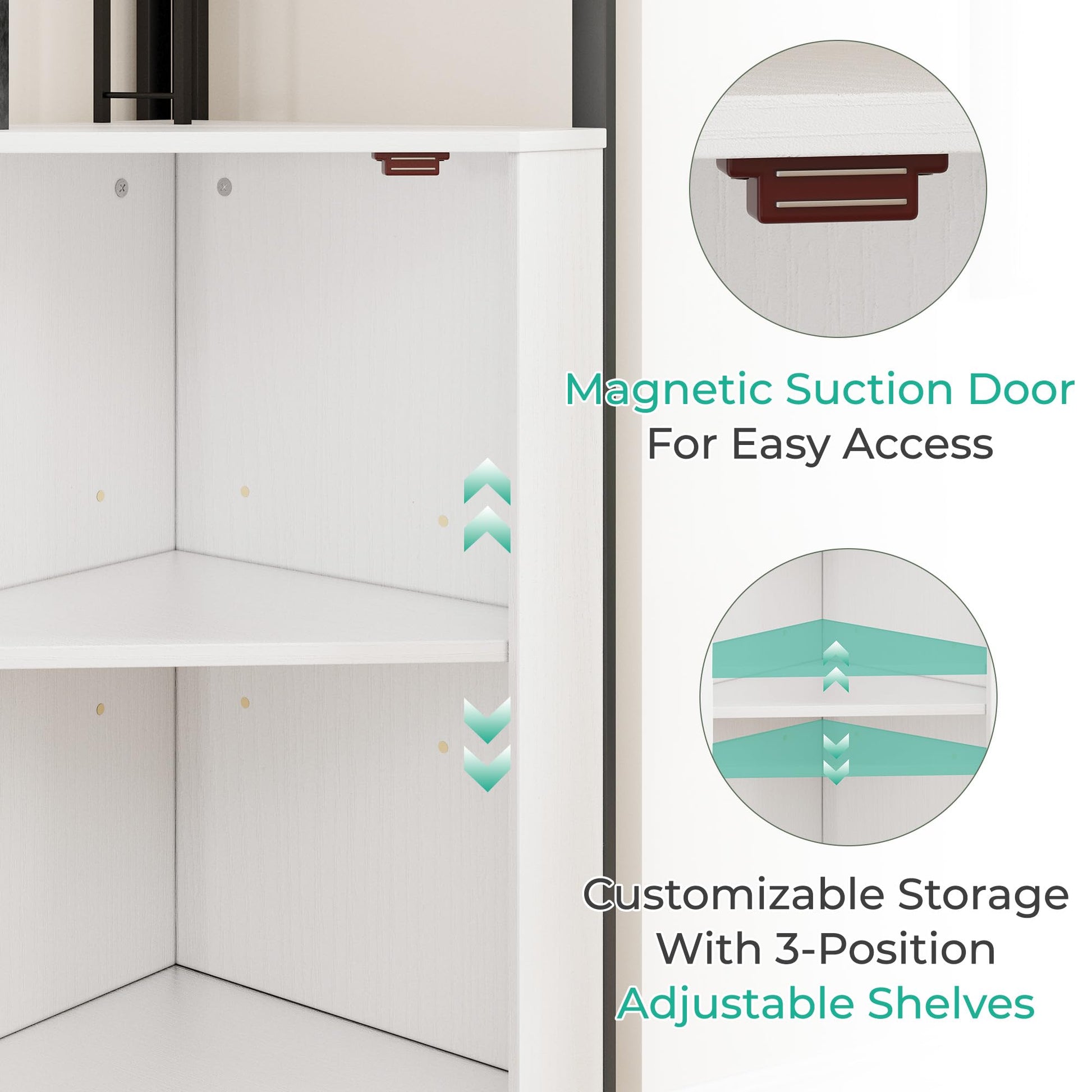 - [Versatile & Stylish Design] Whether you're hosting a party or just enjoying a quiet evening, this tall bar cabinet has you covered. With a sleek combination of open and closed storage, it works beautifully as a home bar, coffee station, buffet, liquor cabinet, or sideboard. The magnetic doors close securely and open effortlessly, while the clean, modern design complements any kitchen, dining room, living room, or entertainment space.