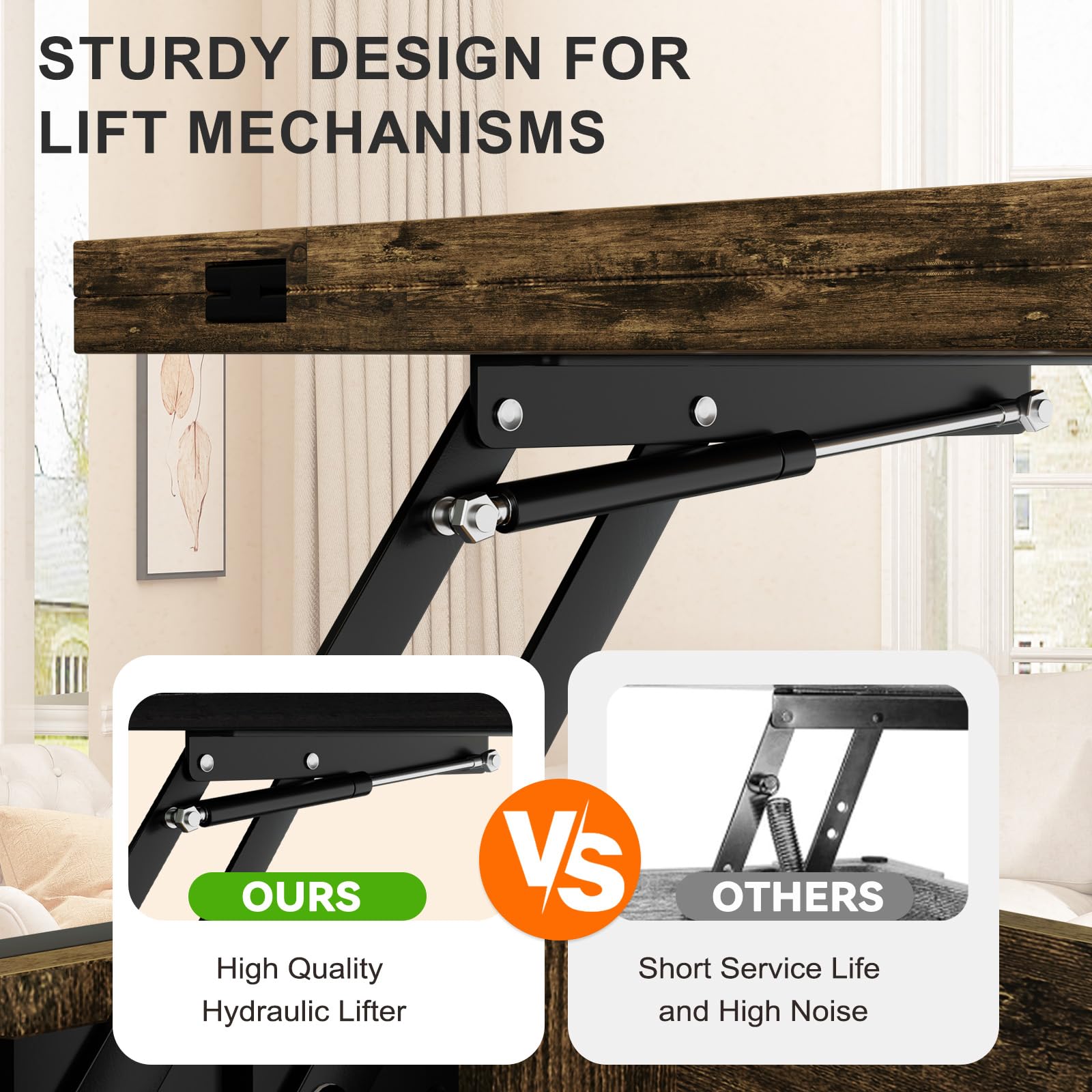 - Sturdy & Durable Construction: Built for daily use, the coffee table features a high-performance gas lift mechanism—quieter and smoother than traditional spring systems. Crafted from premium MDF with a reinforced frame and thickened tabletop, it supports up to 165 lbs overall, with the lift-top holding up to 44 lbs when raised. Finished with a durable melamine veneer, this table is waterproof, scratch-resistant, heat-resistant, and easy to maintain, ensuring long-lasting performance.