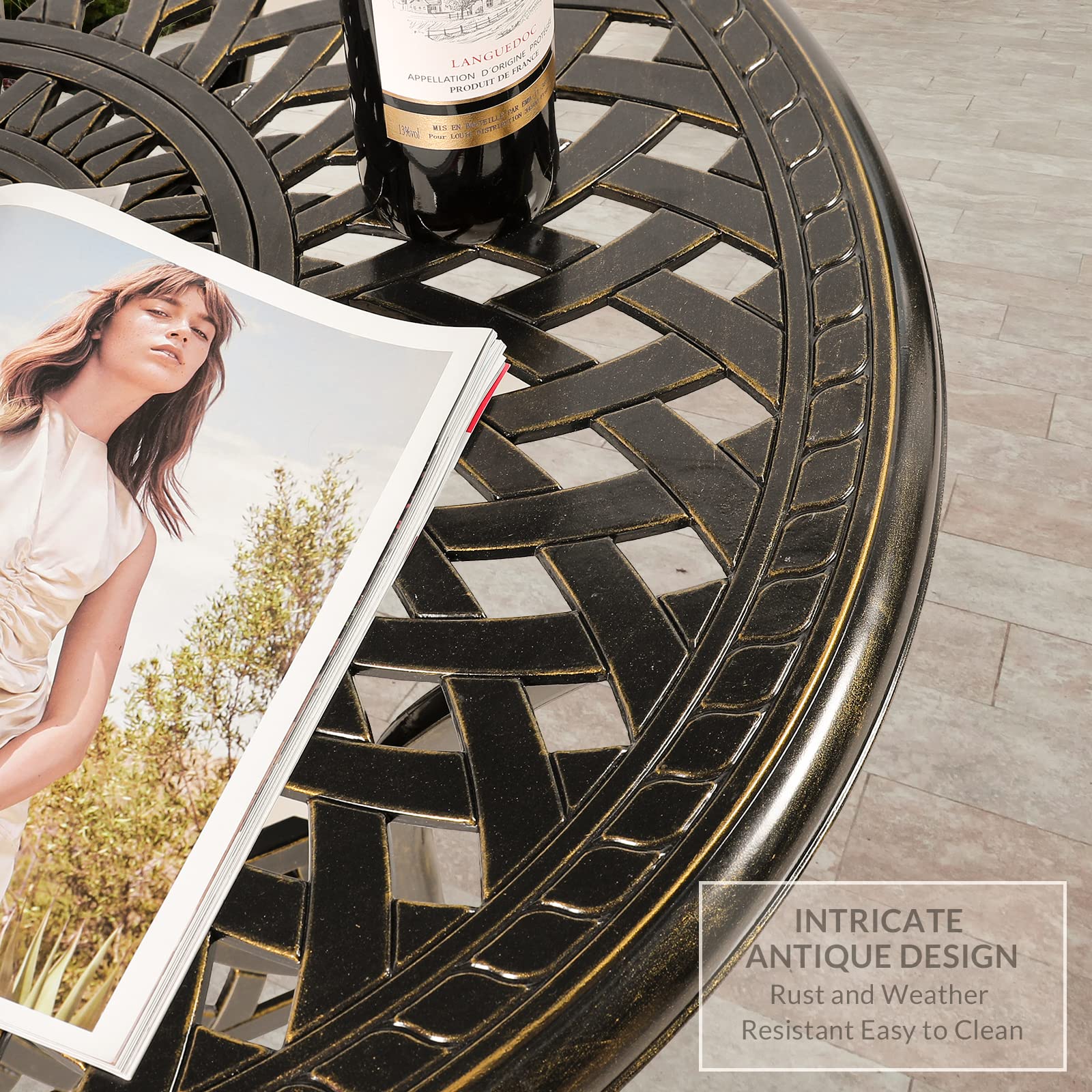 VIVIJASON 3-Piece Patio Bistro Set, Outdoor All-Weather Cast Aluminum Furniture Dining Set, Include 2 Swivel Chairs and 31" Round Table w/Umbrella Hole for Balcony, Lawn, Garden, Antique Bronze