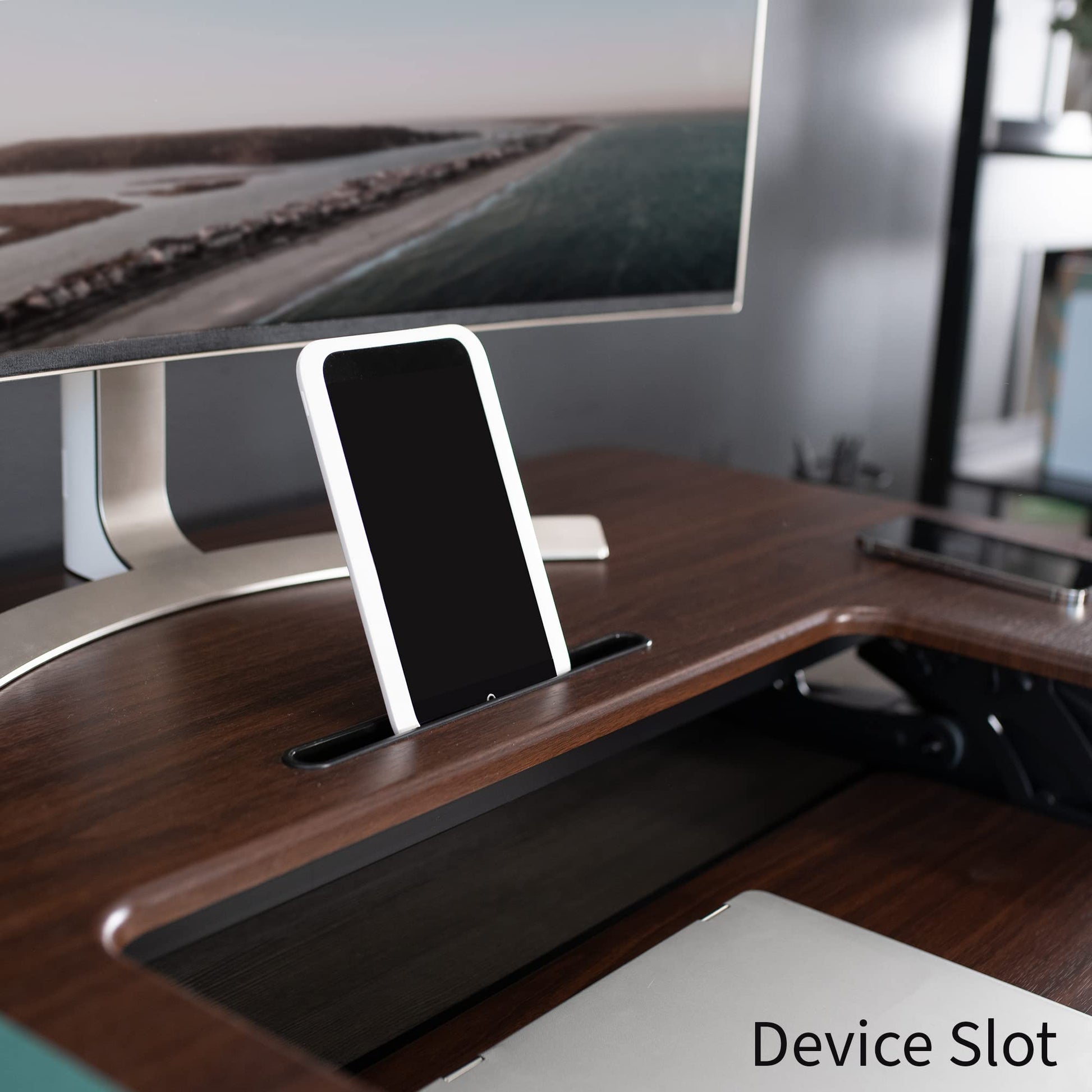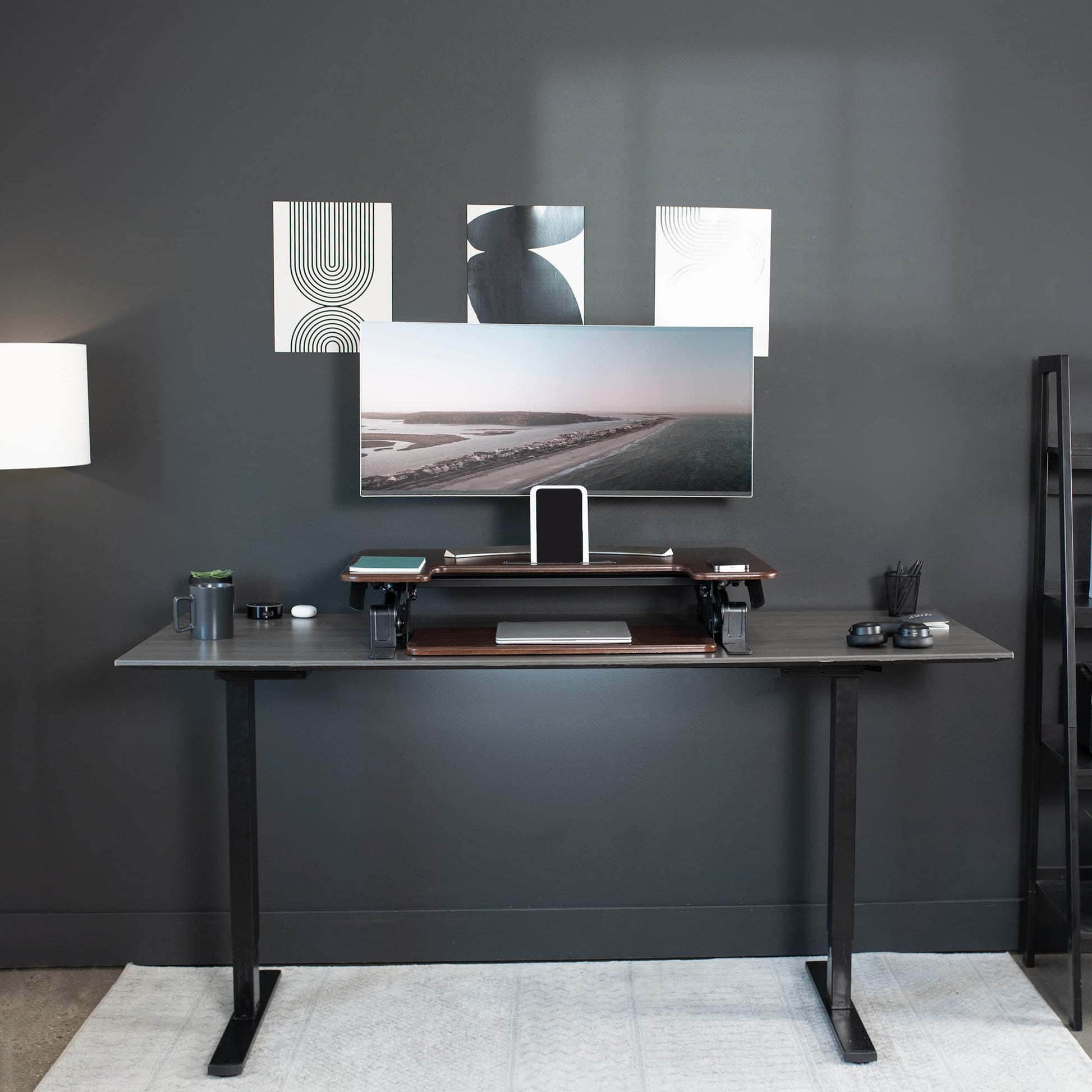 VIVO 42 inch Height Adjustable Stand Up Desk Converter, V Series, Quick Sit to Stand Tabletop Dual Monitor Riser Workstation, Dark Walnut Top, Black Frame, DESK-V000VLD