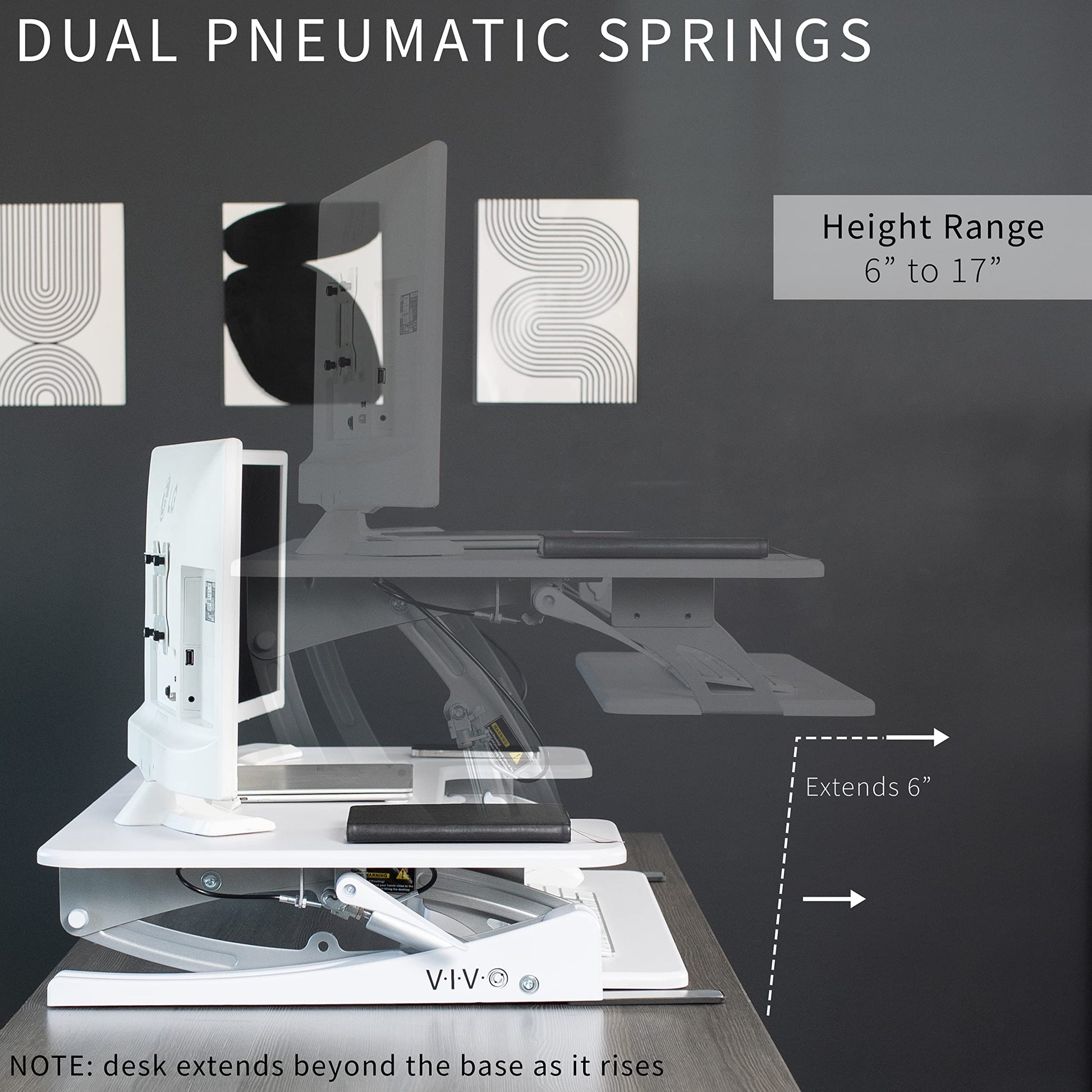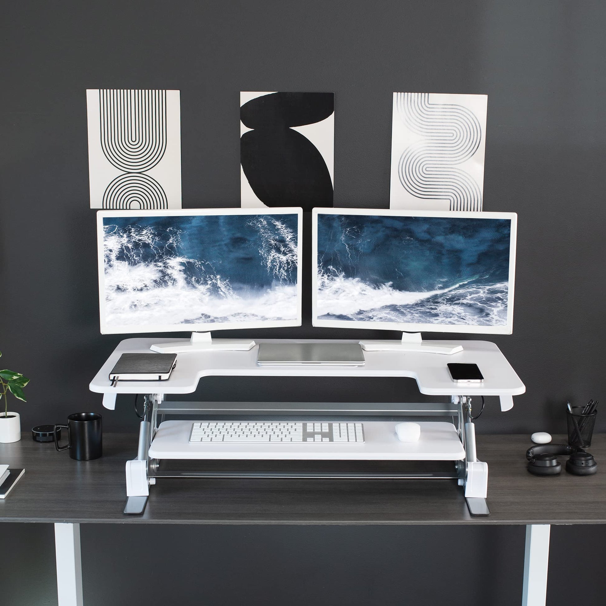 VIVO 42 inch Height Adjustable Stand Up Desk Converter, V Series, Quick Sit to Stand Tabletop Dual Monitor Riser Workstation, White, DESK-V000VLW