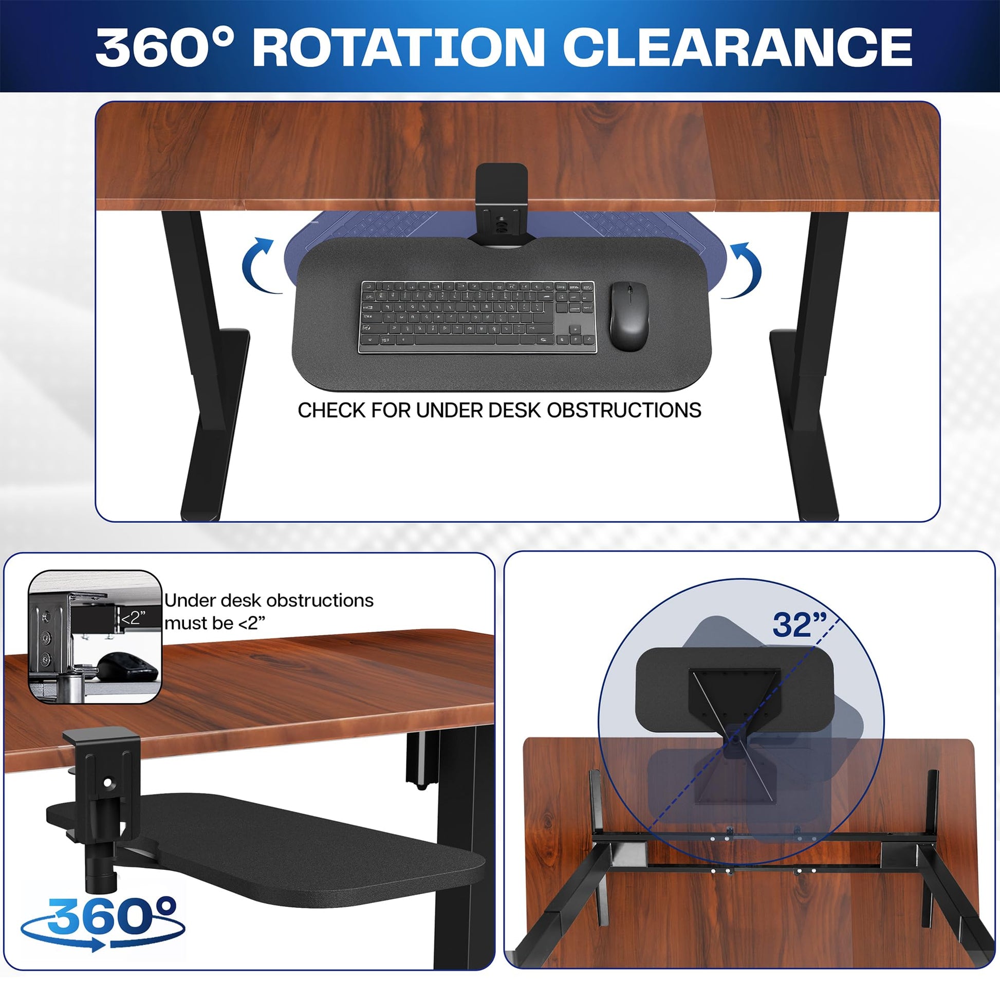 - 360 Rotation for Flexible Placement: The single desk clamp allows this keyboard tray to pivot a full 360 degrees (32" clearance needed for circumference), providing ultimate flexibility for customized placement
