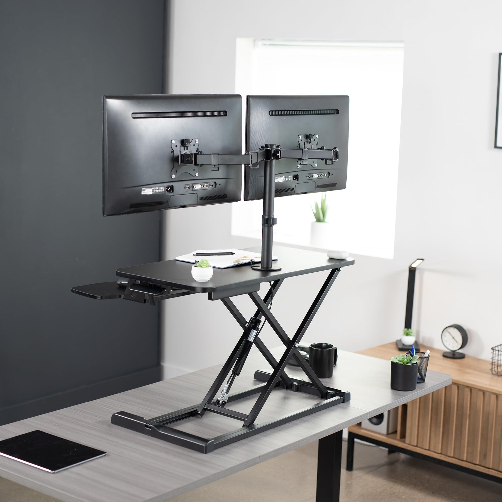 VIVO Height Adjustable 32 inch Standing Desk Converter with Dual 13 to 30 inch Monitor Stand, Sit Stand Monitor Mount and Desk Riser, Black, DESK-V000K-M2