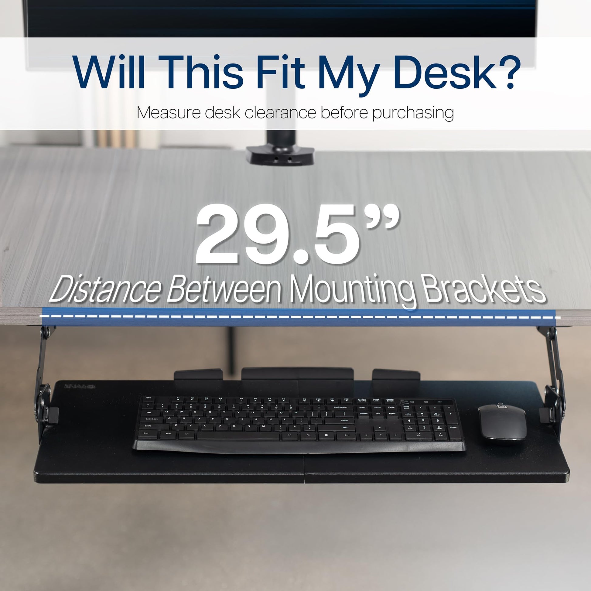 - Save Desk Space: This 26.8” x 11” ergonomic keyboard tray mounts under your desk, holding your keyboard, mouse, and other small accessories below the desktop for added workspace --Patent Pending--