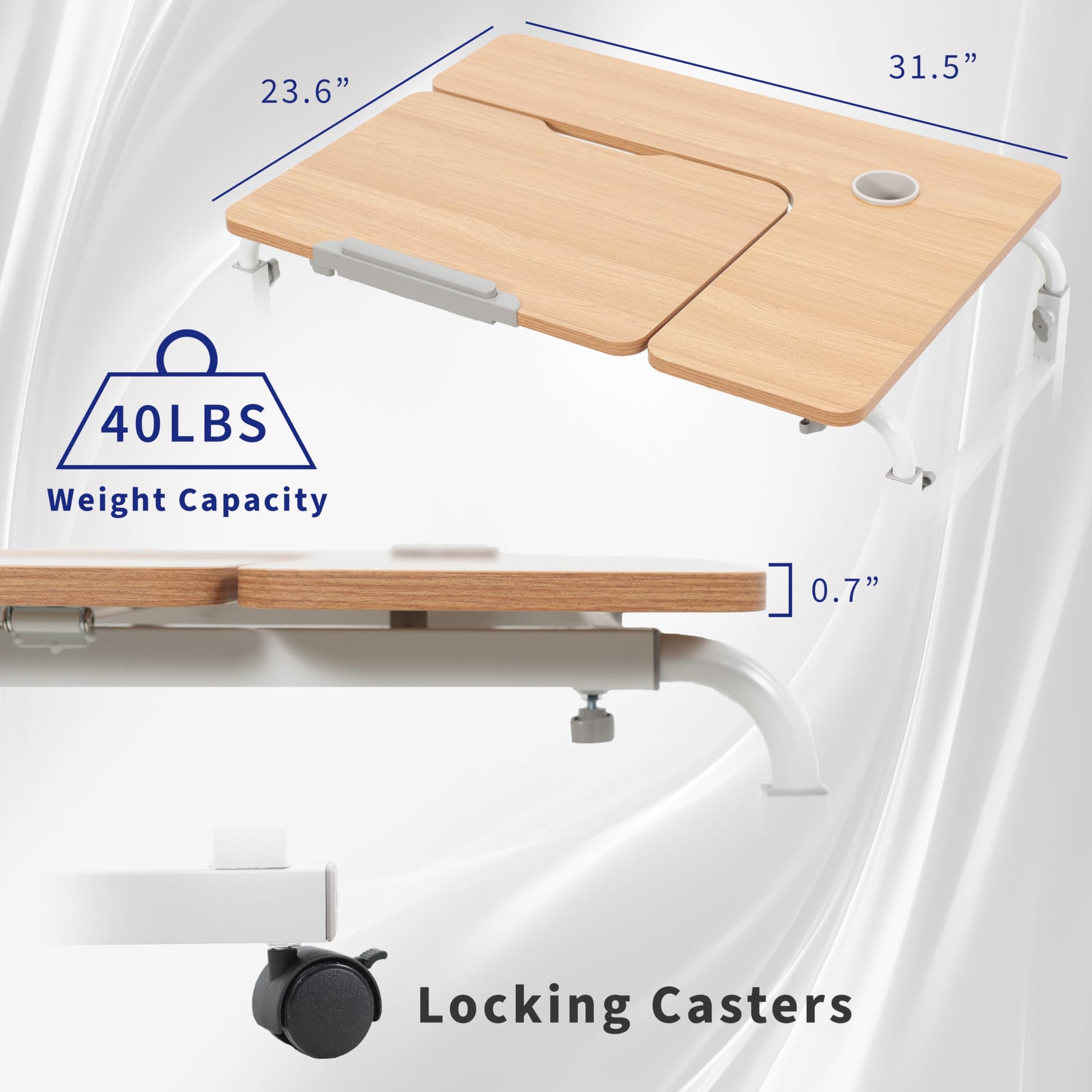 VIVO Mobile Over The Bed and Recliner Table, Tilting Laptop Tray with Height and Length Frame Adjustment, Ergonomic Overbed Kids and Adult Desk on Wheels, Light Wood, DESK-V202A