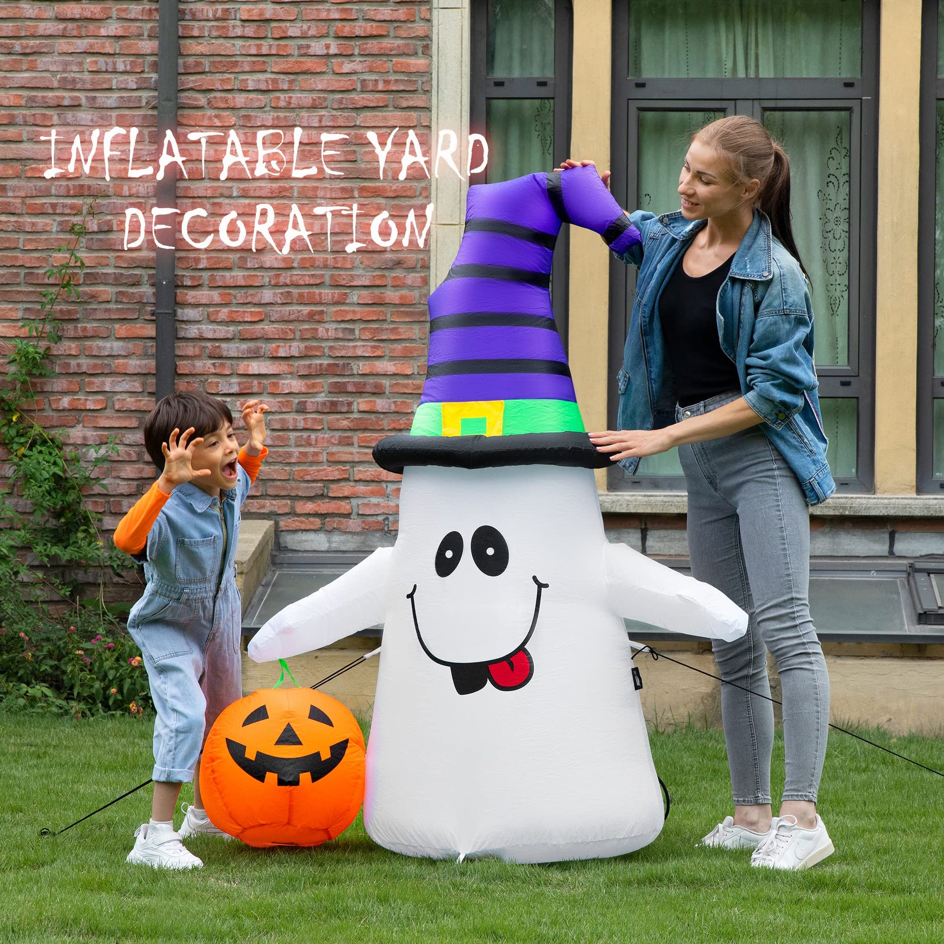 VIVOHOME 5FT Halloween Inflatable Yard Decor, White Ghost with Pumpkin, Outdoor Blow Up with Built-in LED Light for Lawn, Garden, Party