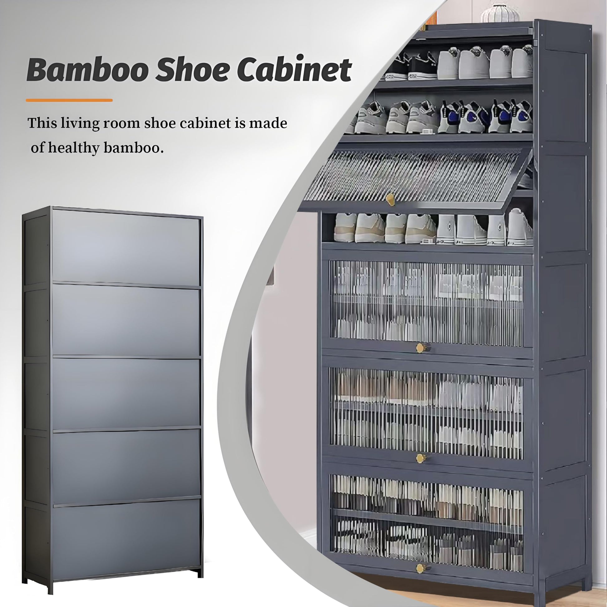 - 【High Quality Shoe Cabinet】The bamboo shoe cabinets is made of nanzhu, which is sturdy and durable, with strong load-bearing capacity, and is not easy to be deformed and damaged after long time use. Acrylic cabinet door design can protect your shoes, suitable for various home styles.