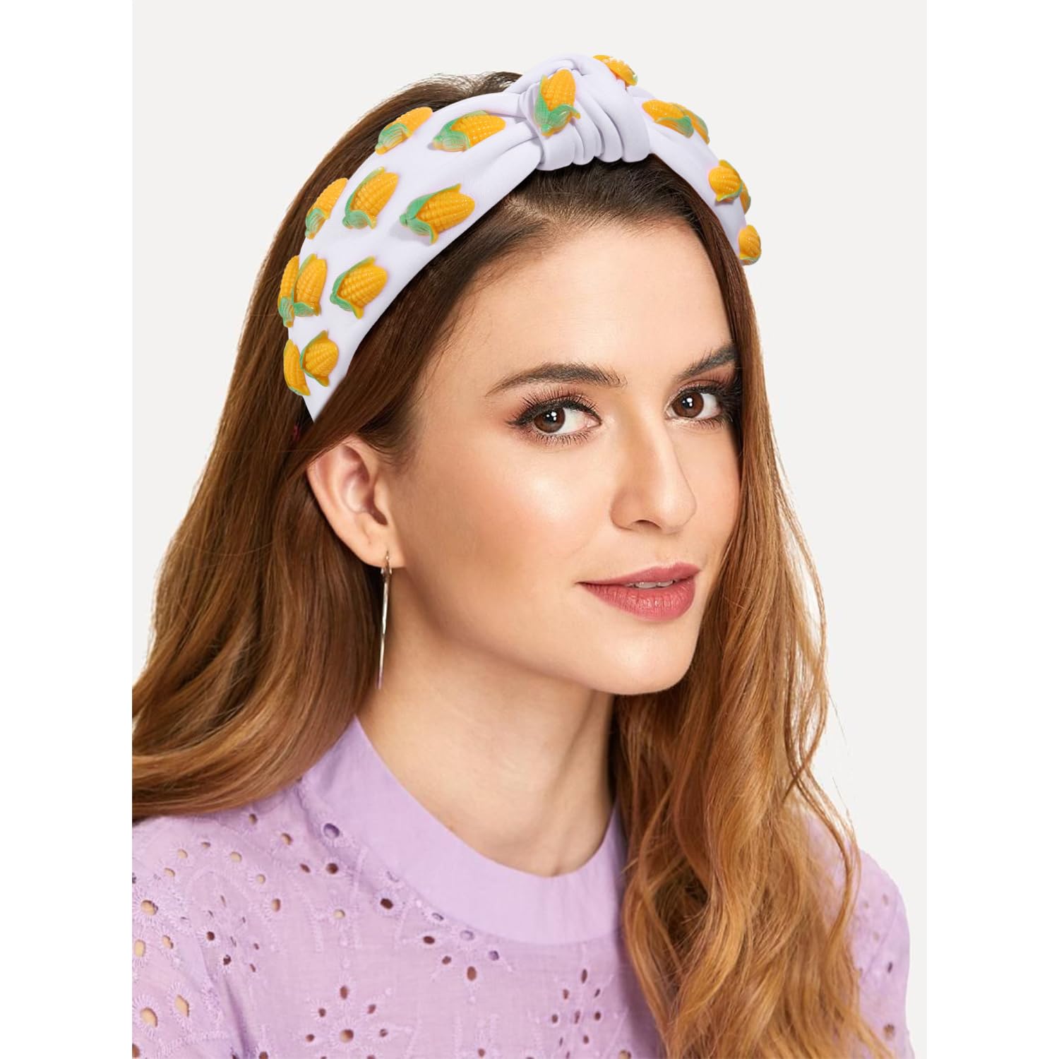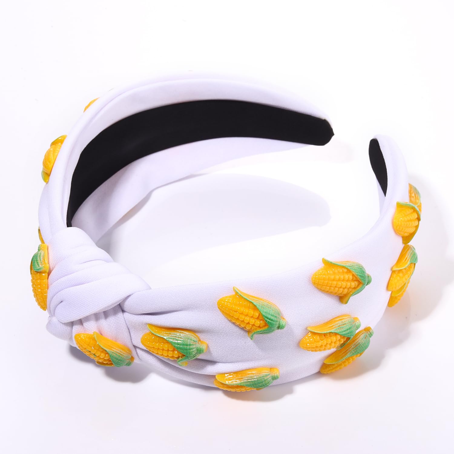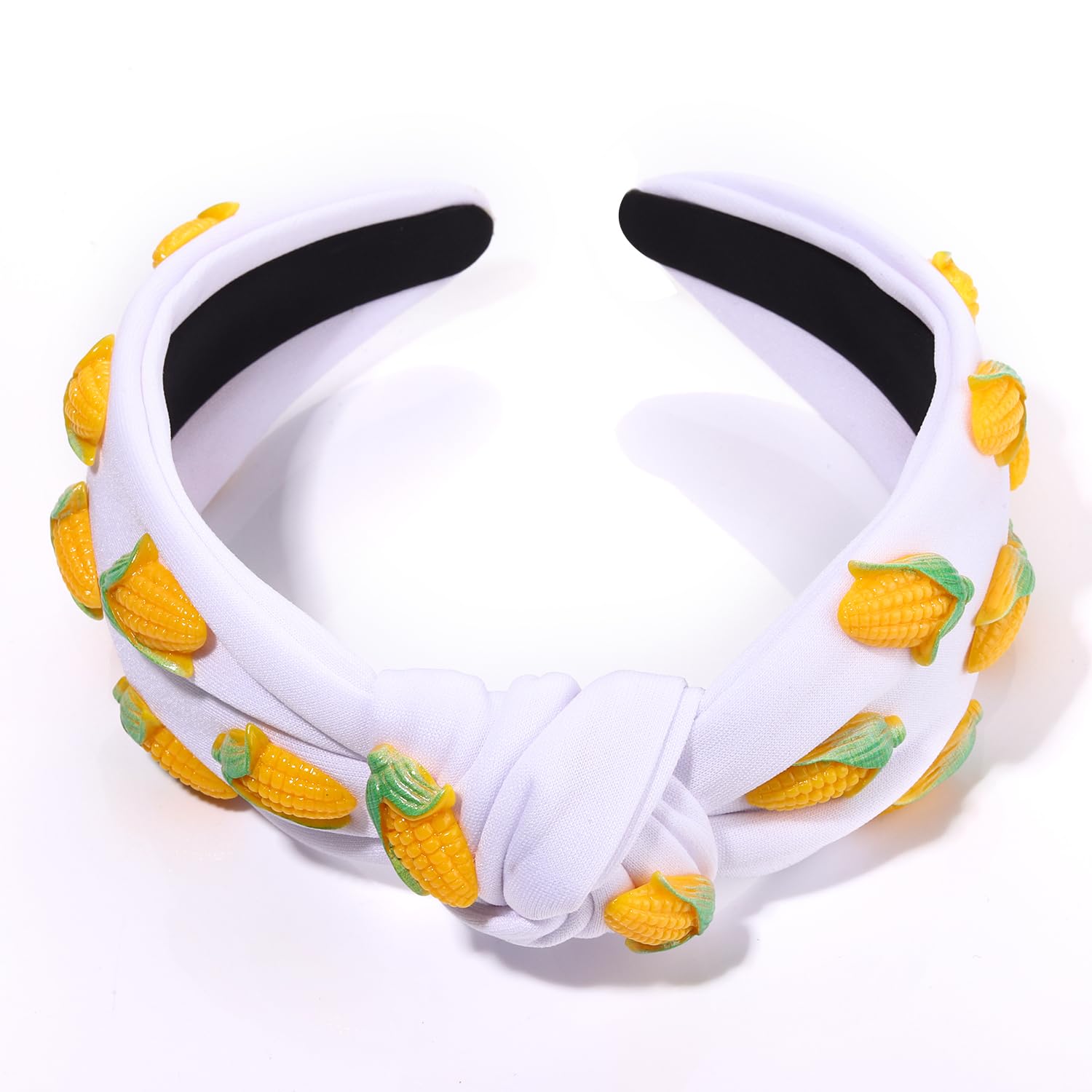 - Embrace the carefree spirit of summer with our fruit headband.Featuring a wide top knot headband with the corn fruit charms,Let its vibrant colors and delightful design transport you to tropical paradise wherever you go.Get ready to turn heads and spread the summer vibes with this cutest corn headband!With its chic and trendy style, thisfruit knotted headband is a must-have accessory for any fashionista