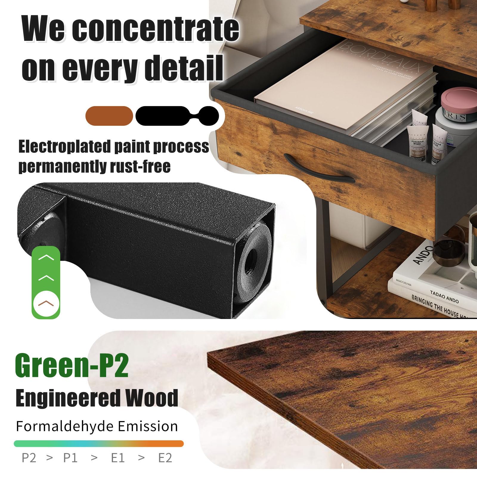 VonDream End Table with Fabric Drawer, Nightstand for Bedroom, Small Printer Stand for Home Office, Side Table with Storage
