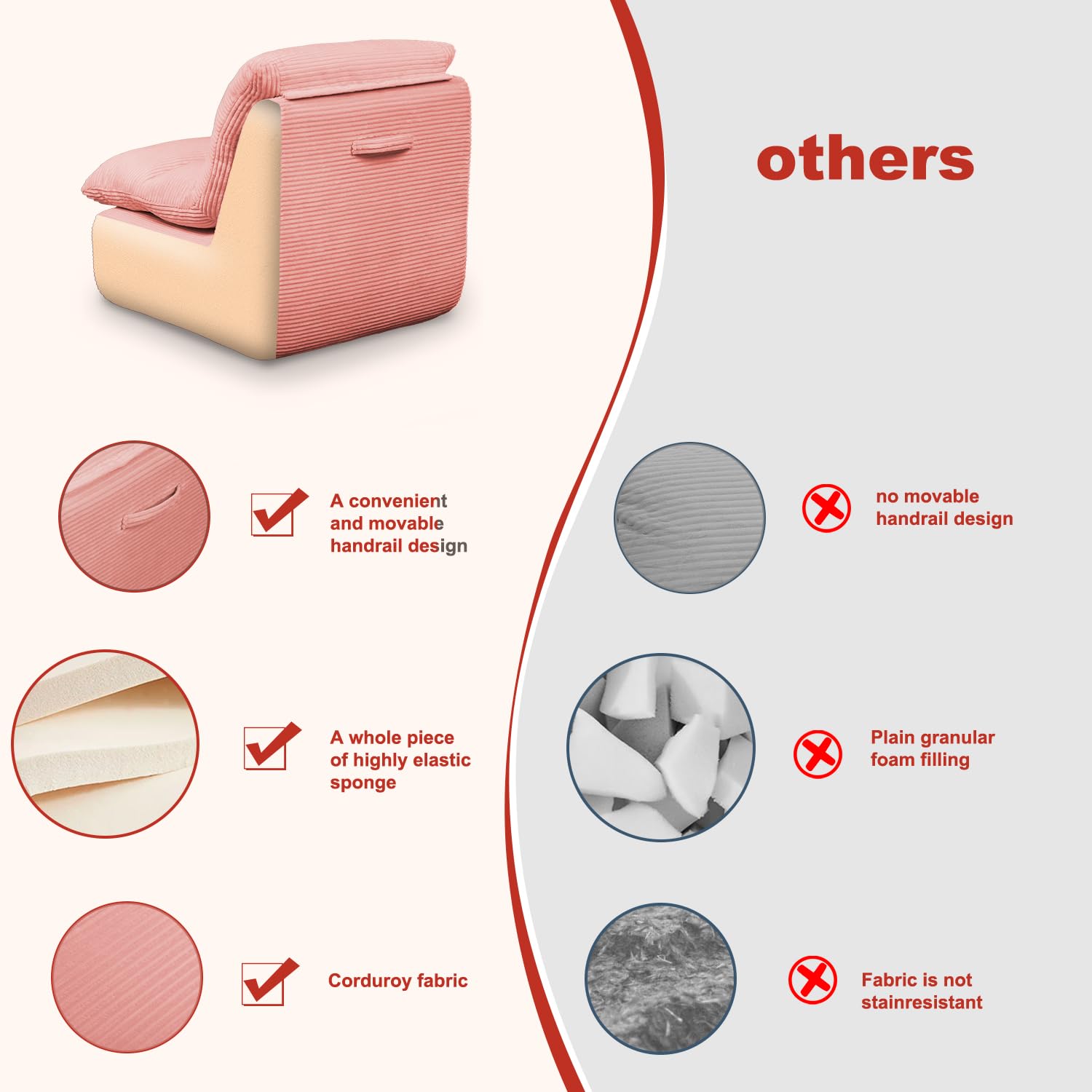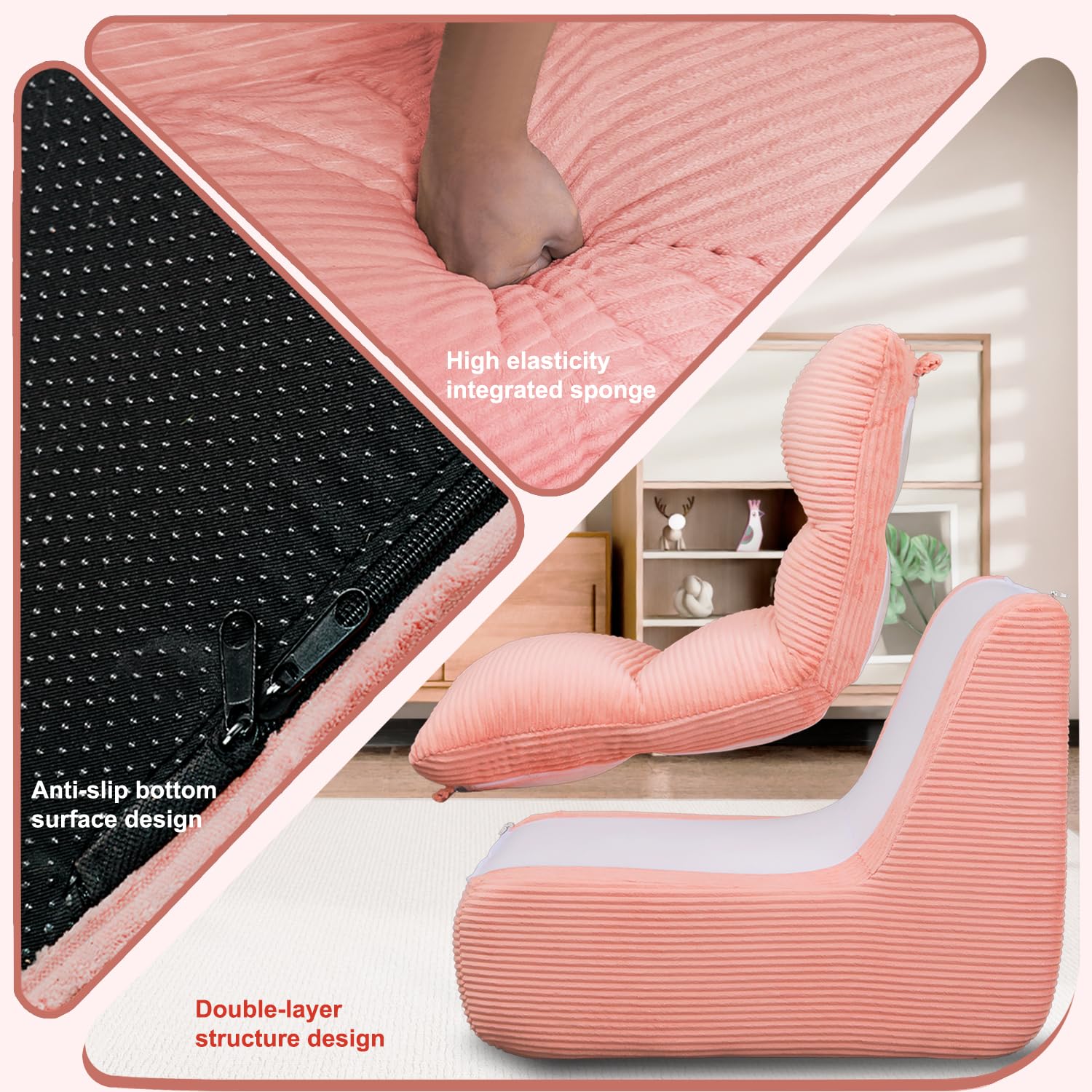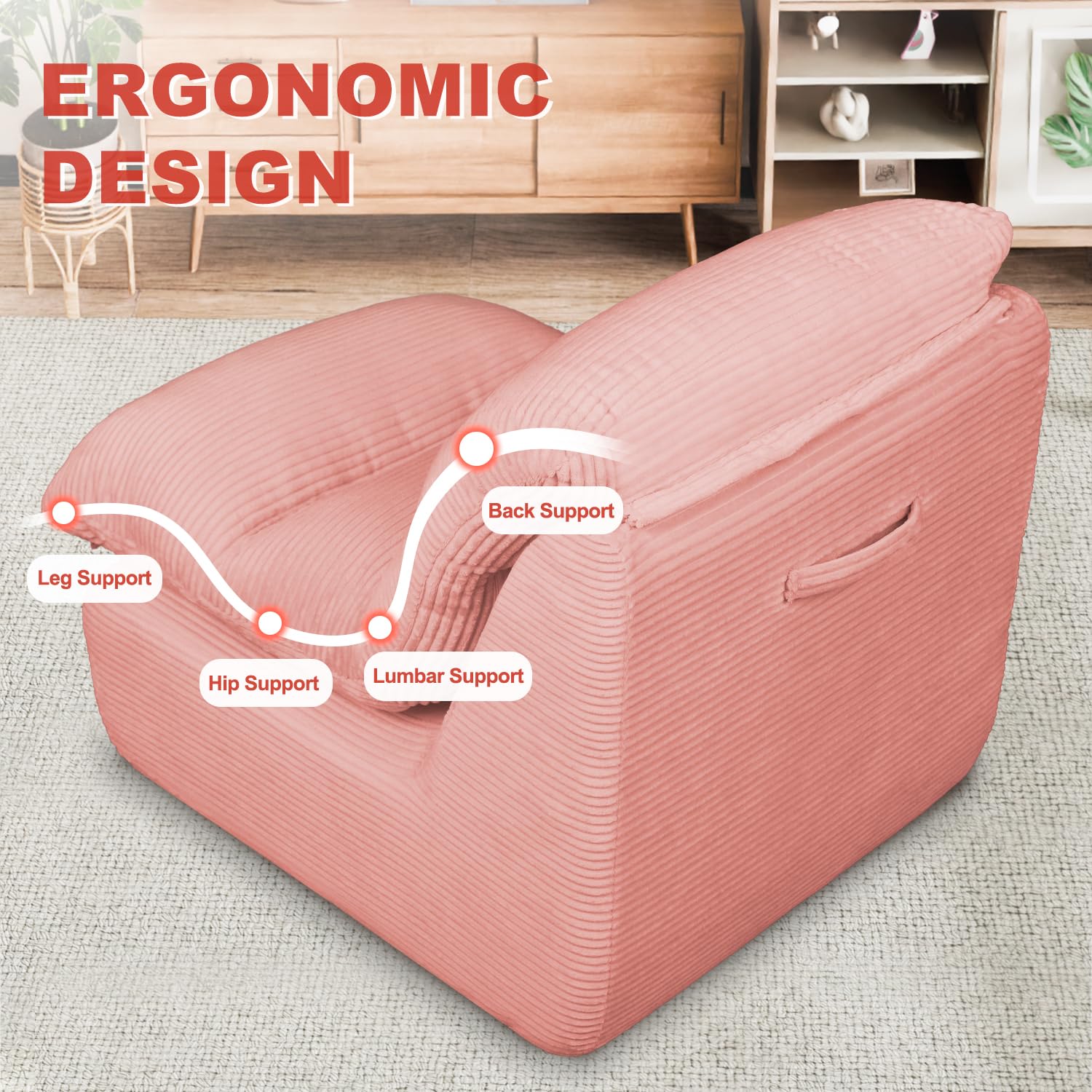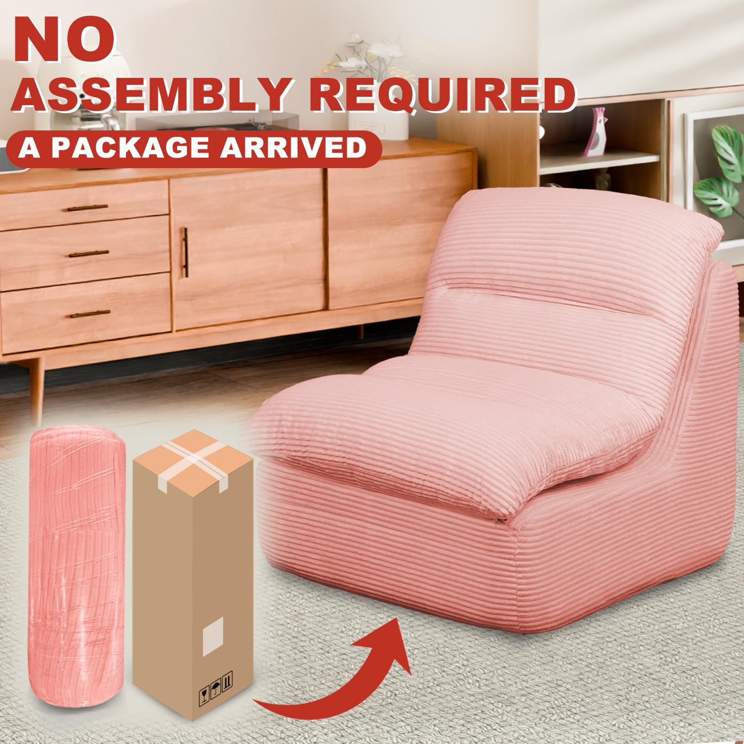 Vonesse Bean Bag Chair, Double-Layered Bean Bag Chair for Adults, Comfortable Memory Foam Bean Bag Sofa, Corduroy Bean Bag Couches for Living Room Bedroom (Pink)