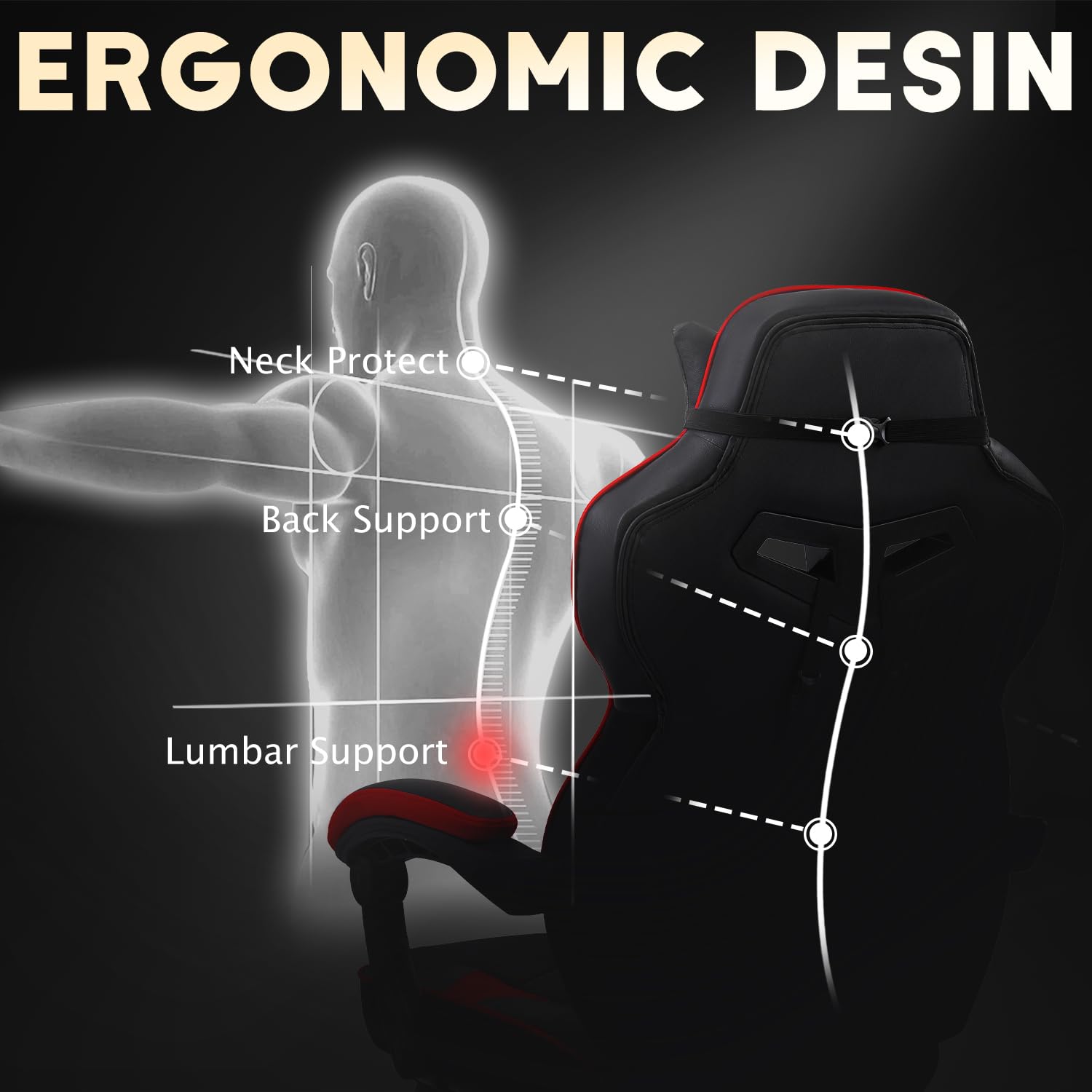 - Computer chair brings comfort and relaxation: The game chair is equipped with an adjustable headrest, providing enhanced support for the neck and head. The adjustable lumbar support of the gaming chair with massage comes with a built-in massage function, enabling you to fully relax. What's more, the gaming chair with footrest offers an extra level of comfort, making it the perfect choice for prolonging both gaming and working sessions.