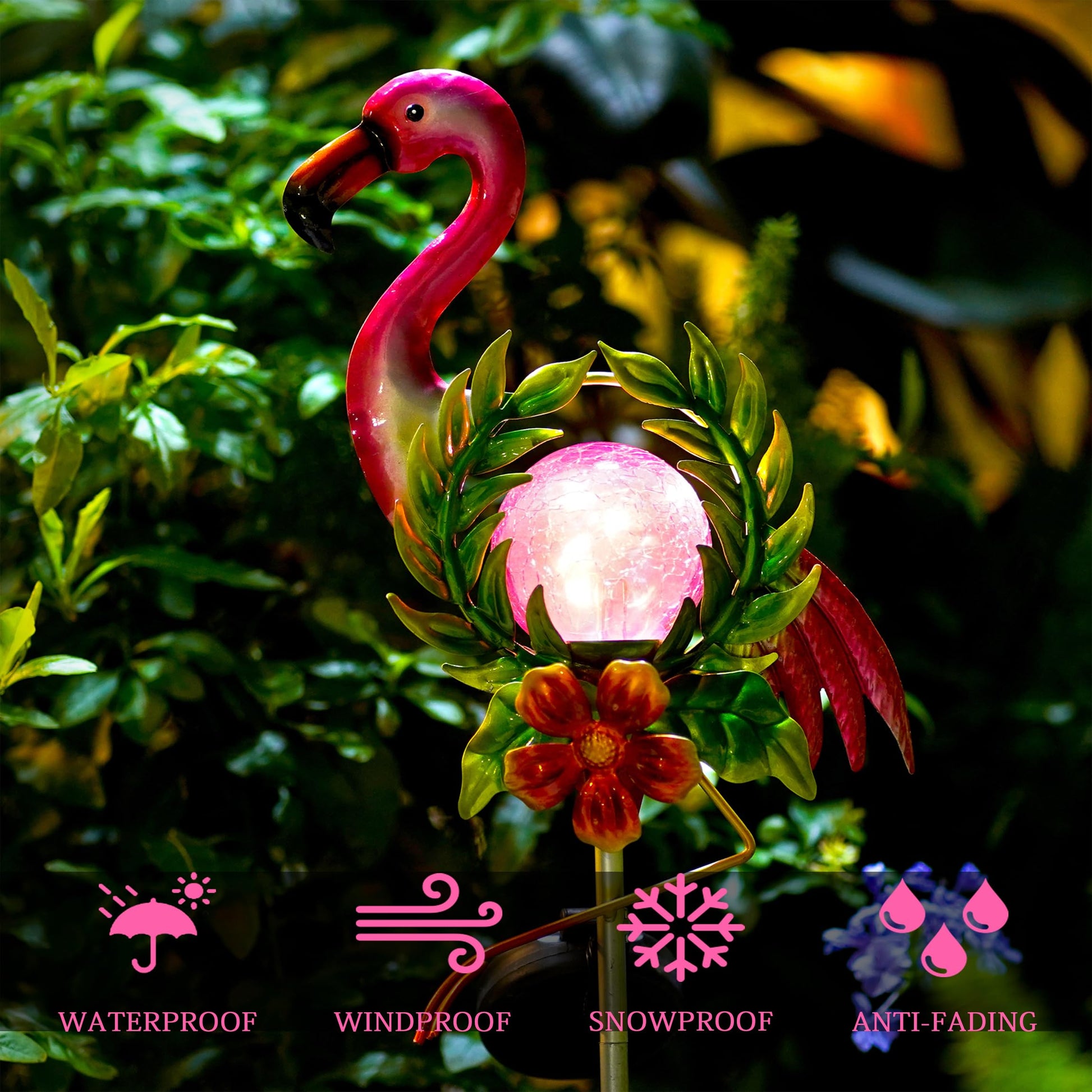 Voumsil Solar Garden Light for Garden Decoration, 40.9 Inch Flamingo Solar Stake with Cracked Glass Puck Light for Outside Patio Pathway Yard Decoration(Flamingo)