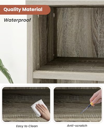 - Quality Craftsmanship: This 3-tier bookcase is made of high-density particleboard and is CARB compliant for a safer home environment. Also, the planks are waterproof, scratch-resistant, and easy to clean.