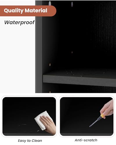 - Quality Craftsmanship: This 3-tier bookcase is made of high-density particleboard and is CARB compliant for a safer home environment. Also, the planks are waterproof, scratch-resistant, and easy to clean.