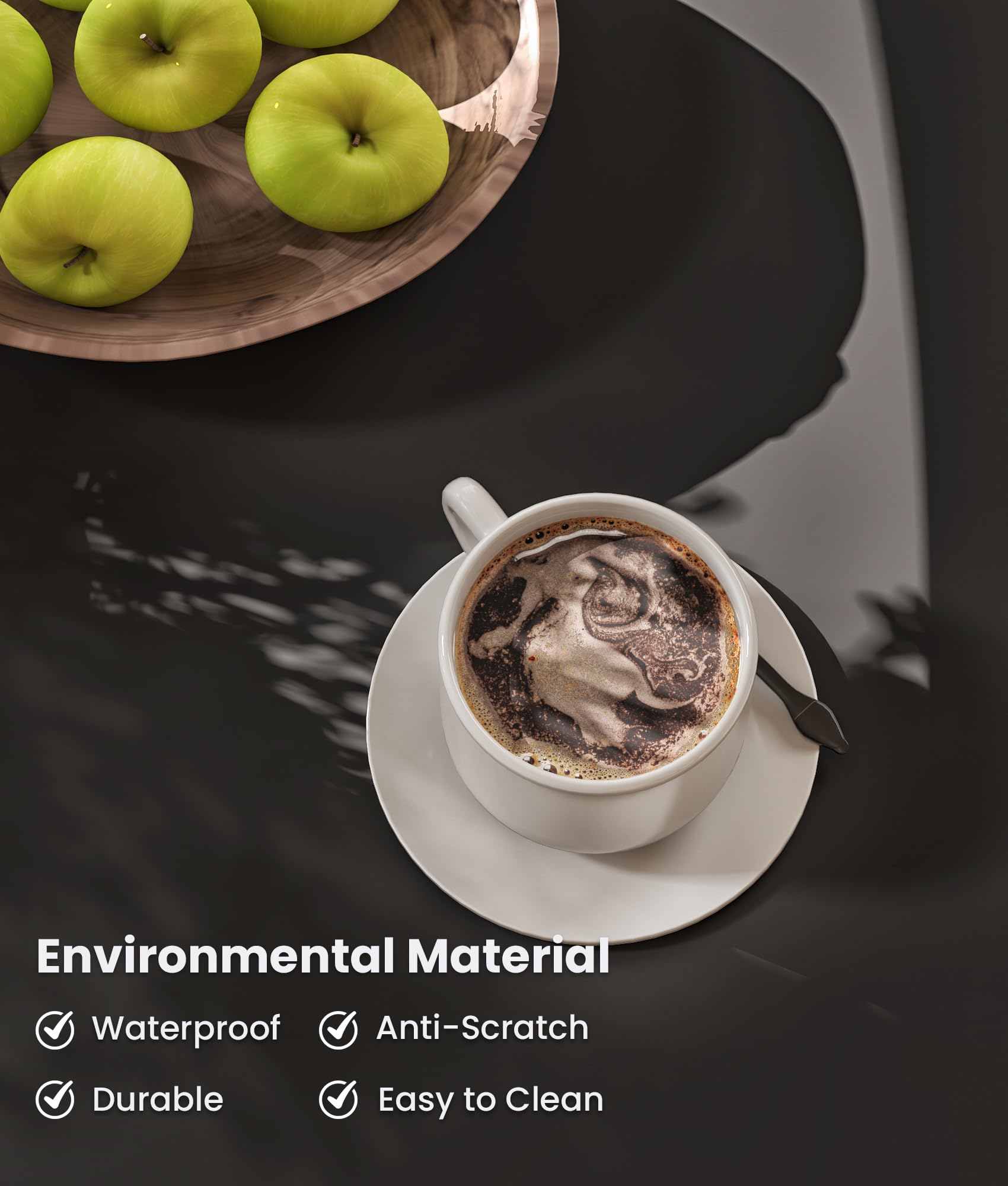 - Premium Materials: The Wooden Center Coffee Table is made of durable CARB-rated composite wood that meets strict emissions standards for a safer home environment. The tabletop is waterproof and scratch-resistant, making it last longer than a regular rectangular coffee table. The tabletop is also easy to clean, and dirt can be easily wiped off the tabletop with a damp cloth.