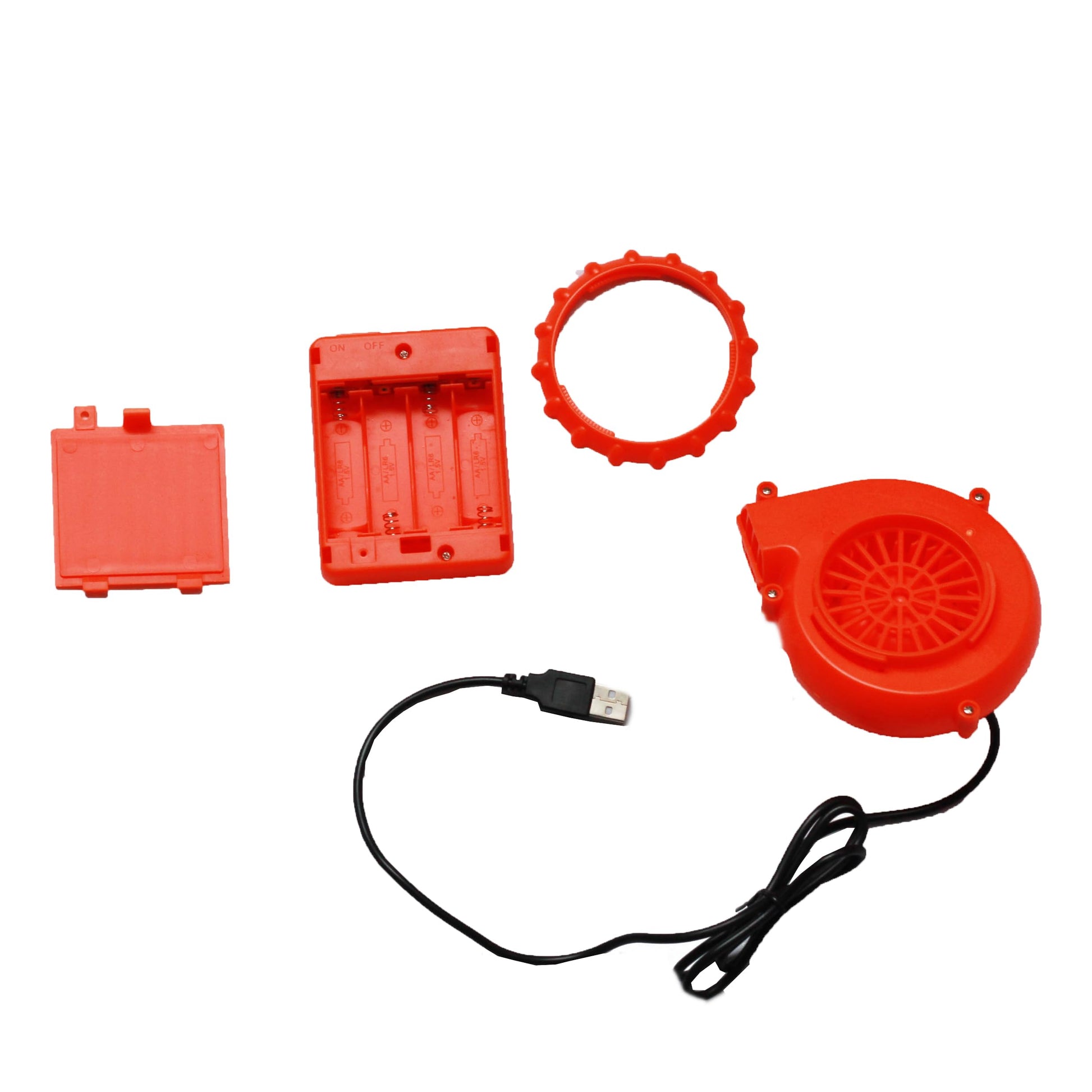 - Cool:There is a blower to keep the clothing inflated and ensure coolness. The blower is fixed to the clothing's ventilation port through a ring. During installation, you need to first remove the ring, take it outside the clothing, place the blower on the ventilation port from inside, and then tighten the blower ring from the outside. The blower can be powered by 4 AA batteries (through battery box) or a power bank. The battery box is included, but batteries are not included.