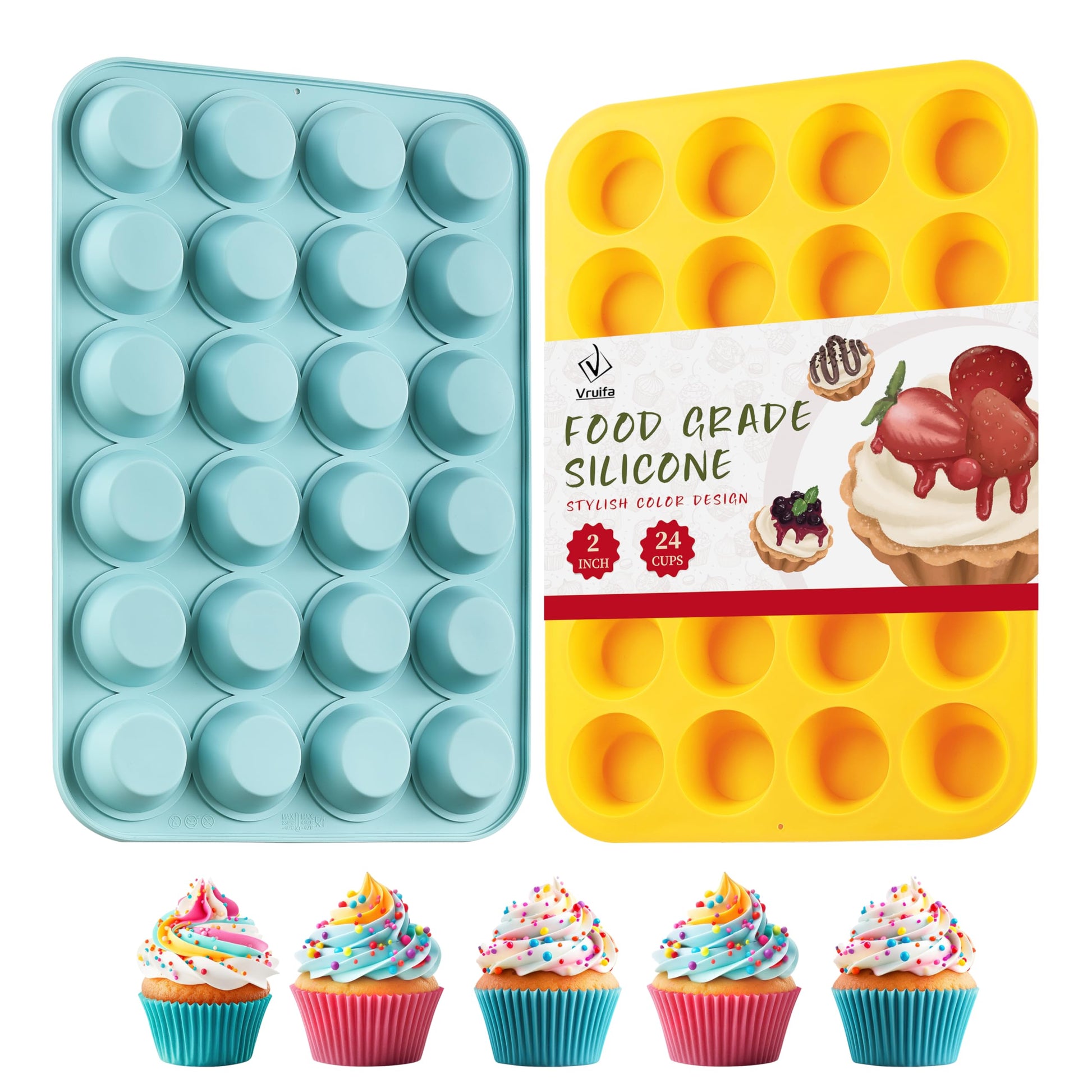 VRUIFA 2PCS Silicone Mini Muffin Pan, 24 Cups Nonstick Mini Cupcake Pan for Baking, BPA Free and Dishwasher Safe, Great for Making Muffin Cakes, Tart, Bread and Egg Bites