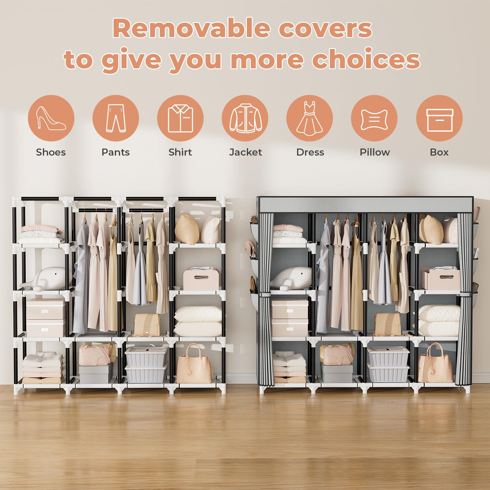 - Portable Wardrobe with Dust-proof Covers: This wardrobe with cover, keep dust and pet out, provides good protection for your clothes. The wardrobe covers is made of premium non-woven fabric, which is durable and breathable. Zipper closure,very convenient