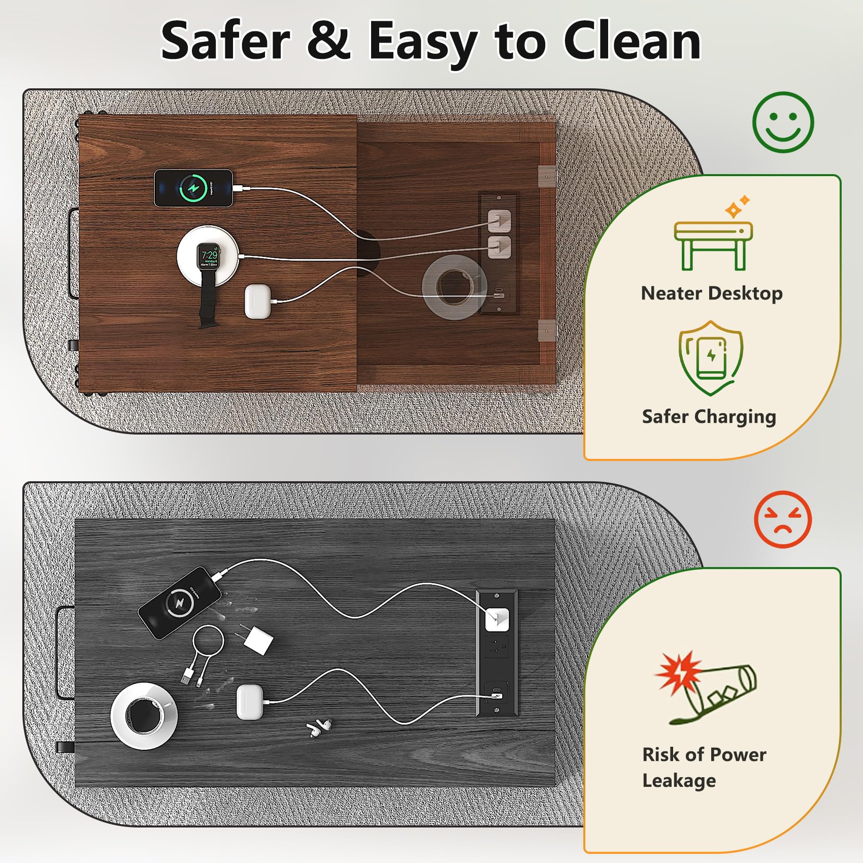 - 【Built-In Charging Station】There are 2 AC outlets and 2 USB ports on the top, and a 6.5-foot power cord, to charge your devices and keep them within reach.