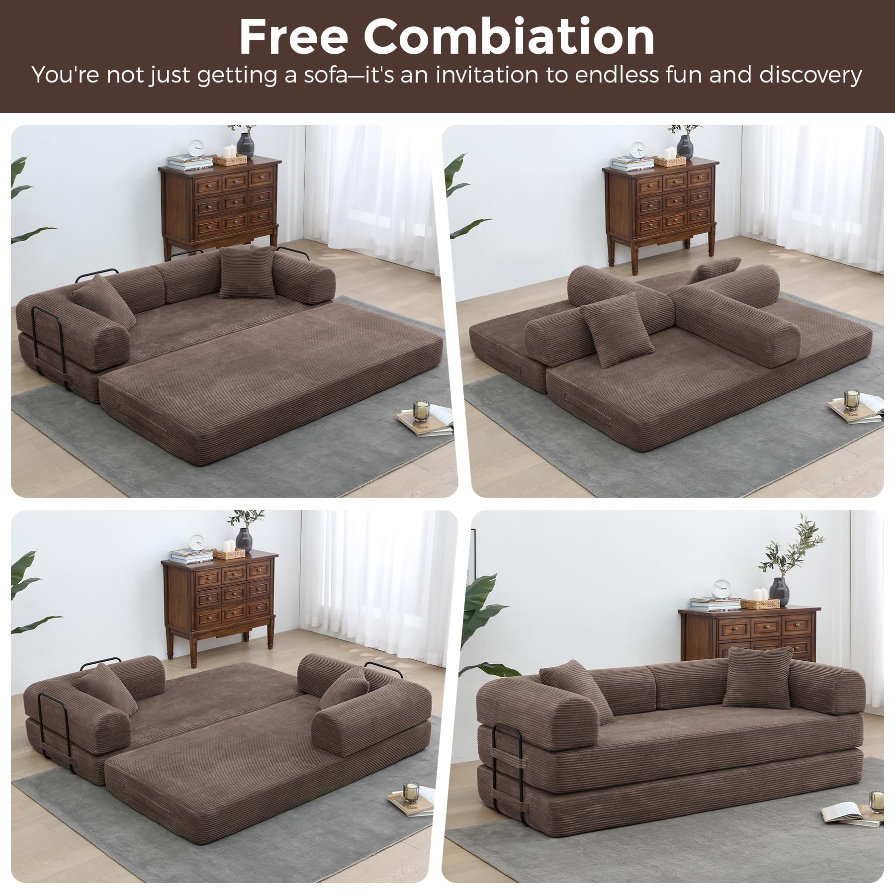 - Ultimate Comfort:Crafted with breathable Small Streak corduroy upholstery, this foldable sofa bed combines high-density foam and plush padding to provide superior pressure relief and ergonomic support, ensuring a restful experience for both lounging and reclining.