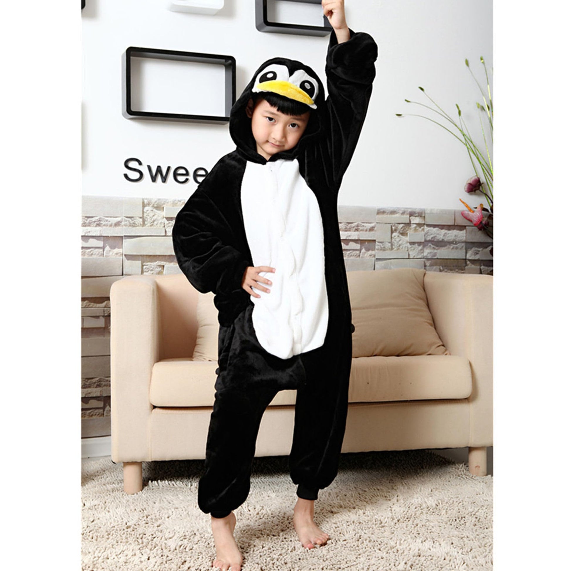 WAFUNNE Kids Penguin Costume Cosplay Halloween Animal Onesie for Boys Girls Child Penguin 120
