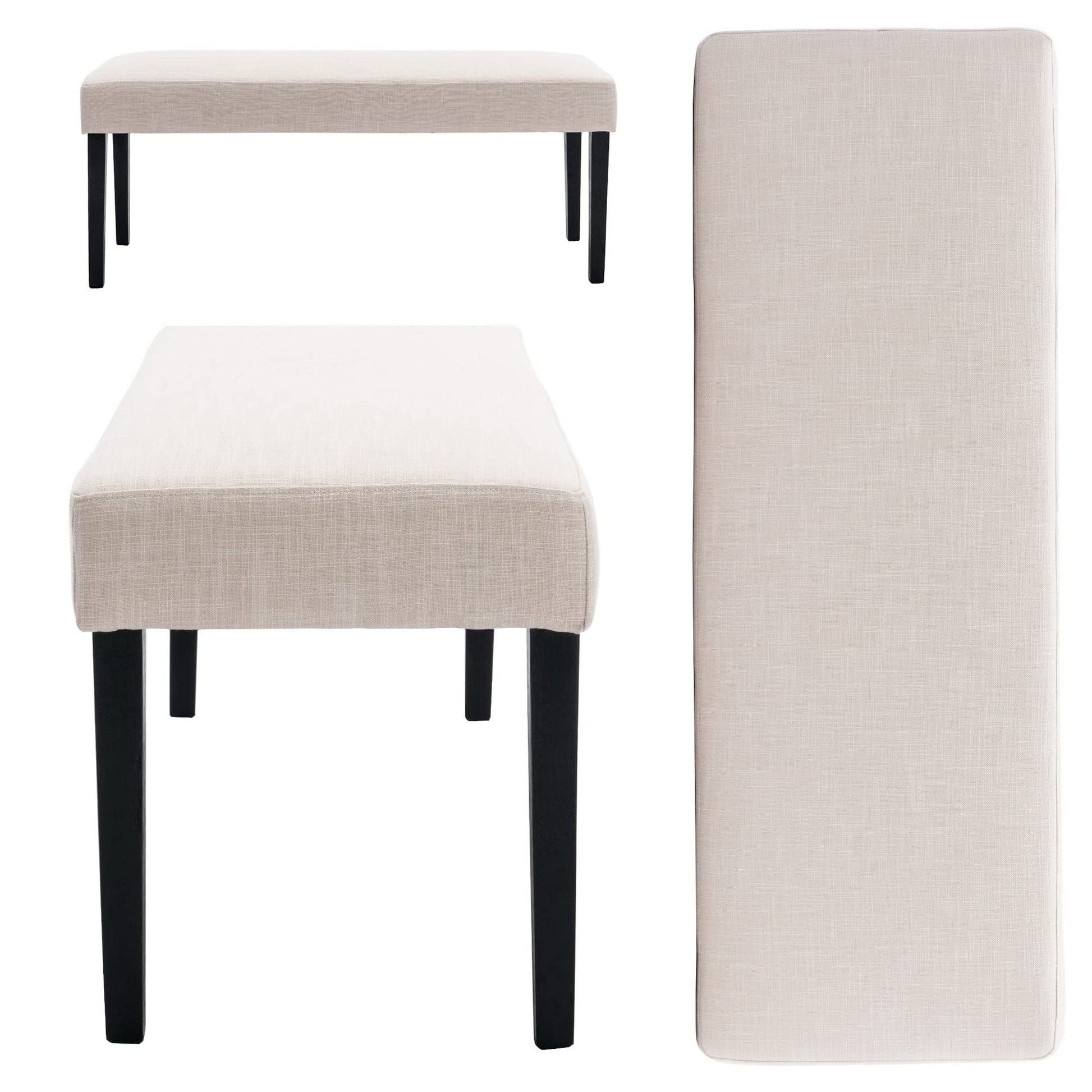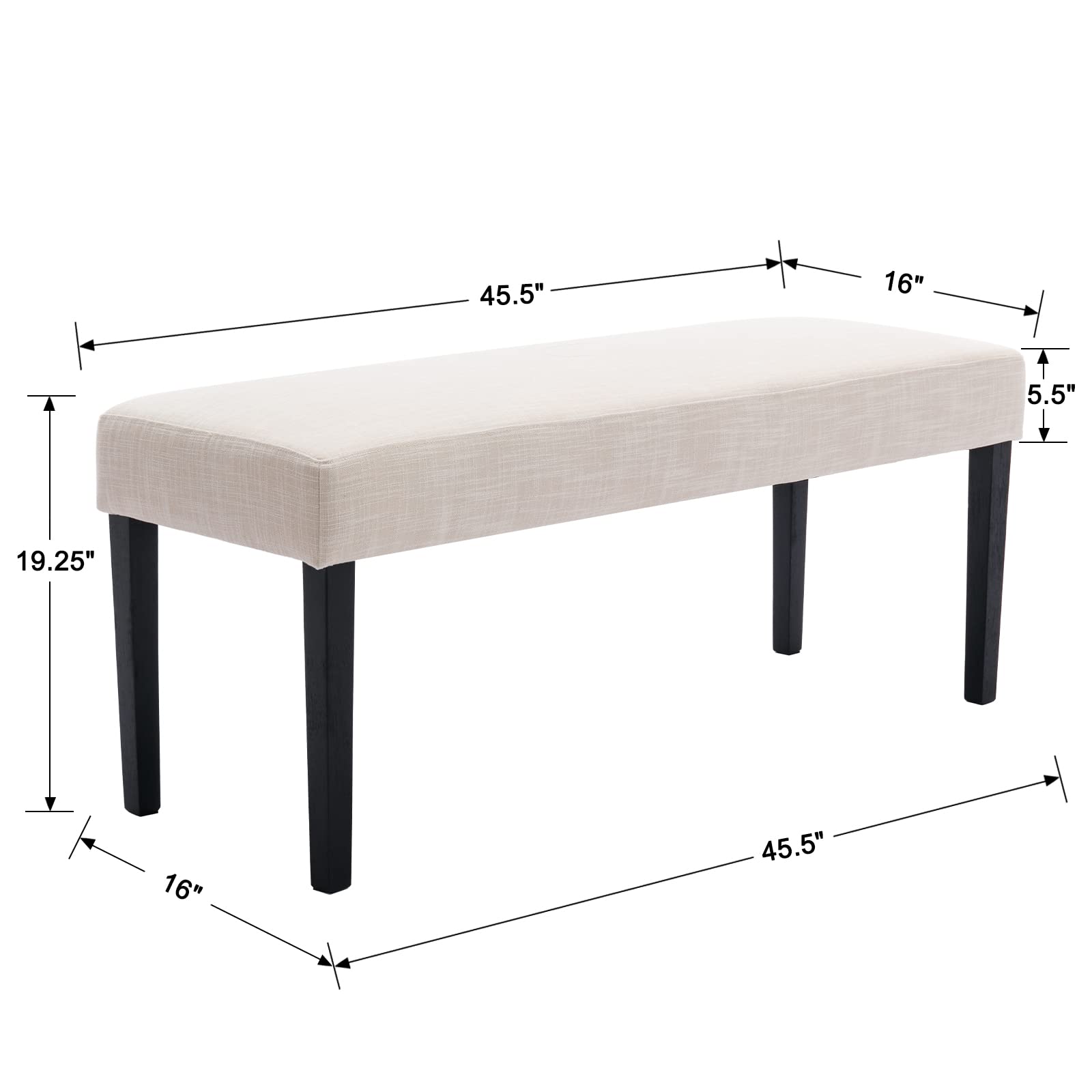 Wahson Farmhouse Linen Upholstered Dining Bench, 45" Long Dining Room Bench Seat with Black Wood Legs, Beige