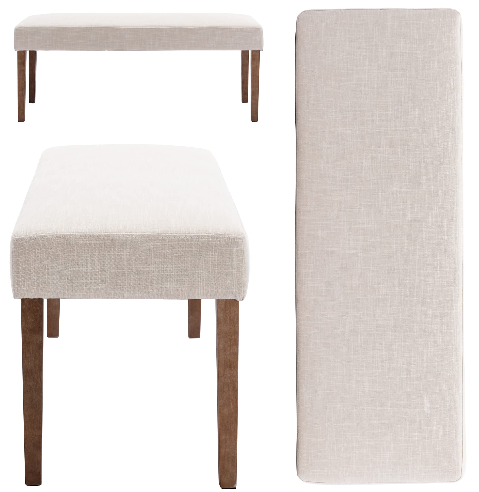 Wahson Farmhouse Linen Upholstered Dining Bench, 45" Long Dining Room Bench Seat with Natural Wood Legs, Beige