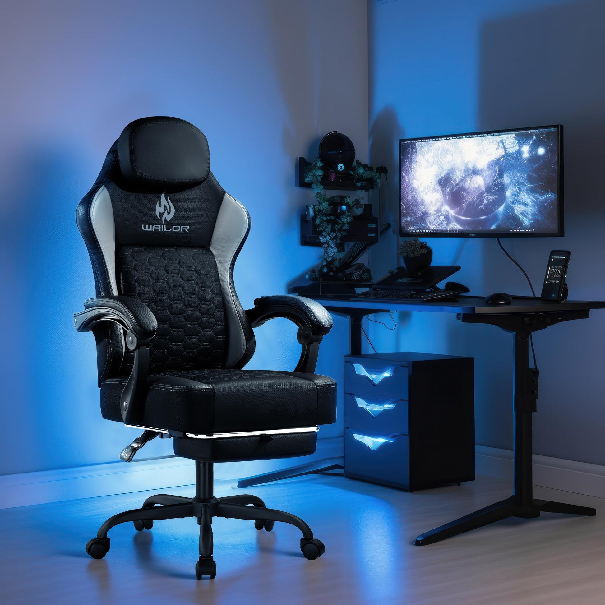 WAILOR Gaming Chair with Pocket Spring Cushion, Video Game Computer Chair with Footrest for Adults, High Back Gamer Leather Chair with Headrest and Lumbar Support for Office Gaming 300LBS