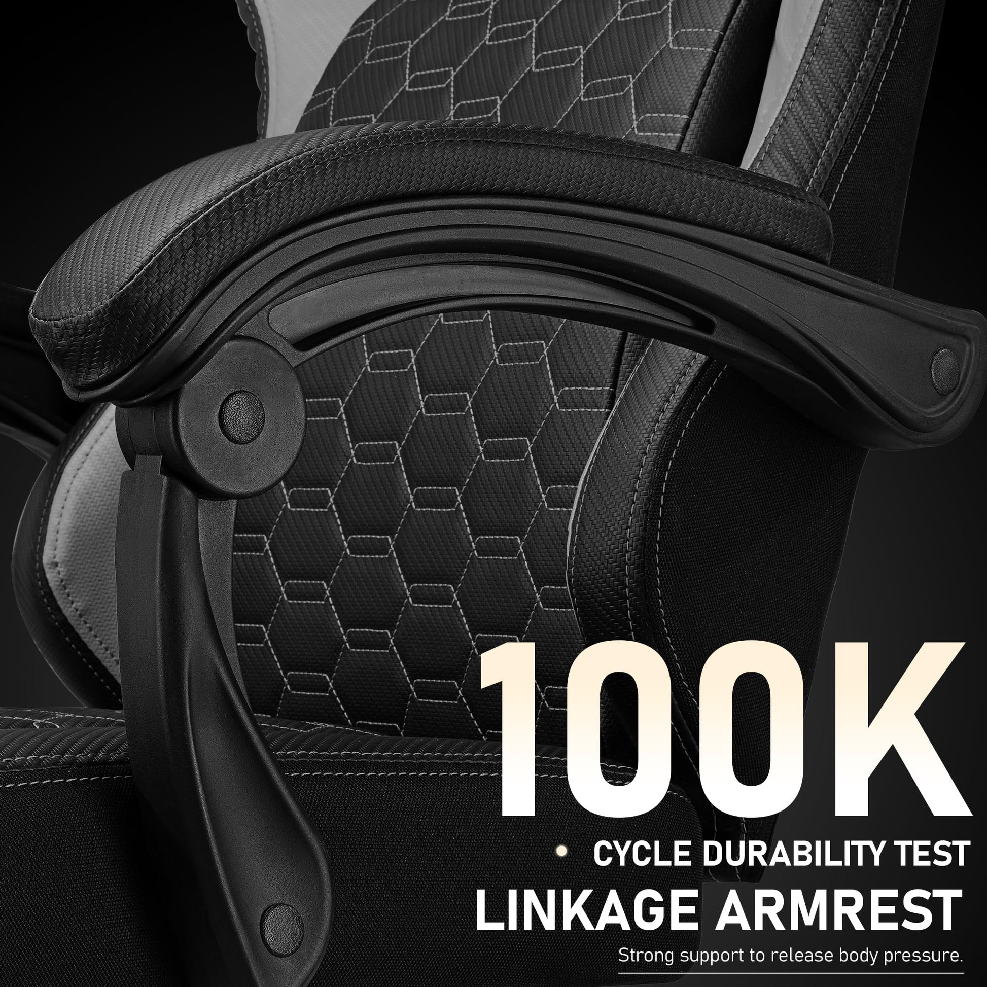 - Comfortable Video Game Chair with footrest: The Linkage armrest design makes the armrest and the gamer chair perfectly integrated. When you adjust the back of the gaming chair, the armrest rotates. Keep your arms in a relaxed position. The footrest are made of an all-steel frame so that your legs don't sink when placed on them. This big and tall gaming chair is suitable for all ages and all body types.
