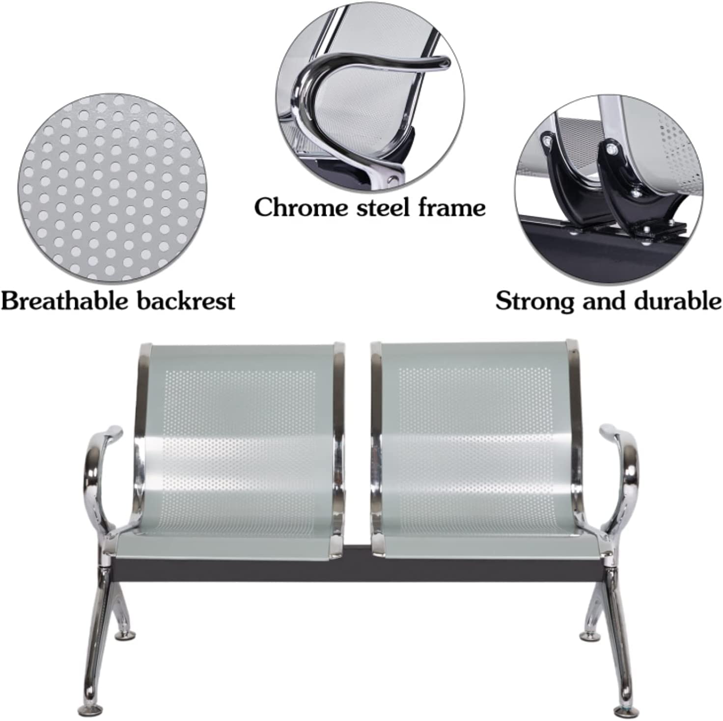 - 【Stable & Durable】Constructed with Stainless Steel(1.5mm thickness perforated cold-rolled steel, powder coated, 1.2 mm thickness cold-rolled steel, chromed), the waiting chair offers a comfortable seating experience. Prevent to rust and prolong service life. Maximum weight capacity for each chair is 330 lbs