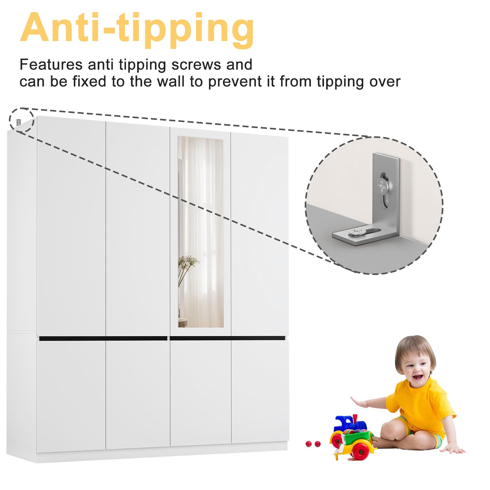 - Durable and Sturdy: This wardrobe closets is made from solid medium-density fiberboard, ensuring durability and longevity. It also comes with anti-tip devices to prevent accidents. Supported by a sturdy base, it guarantees a long service life and ensures the long-term use of the door wardrobe