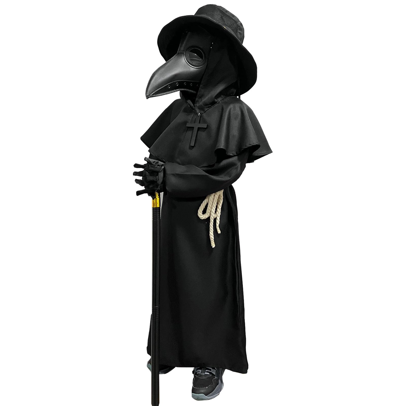 - 【High-Quality Materials】The boys funny halloween costume of hat ski mask and black robe are made from high-quality fabrics, while the leather plague mask adds a touch of eerie realism. The wooden cross necklace, gloves, and staff are meticulously designed for a complete and realistic appearance