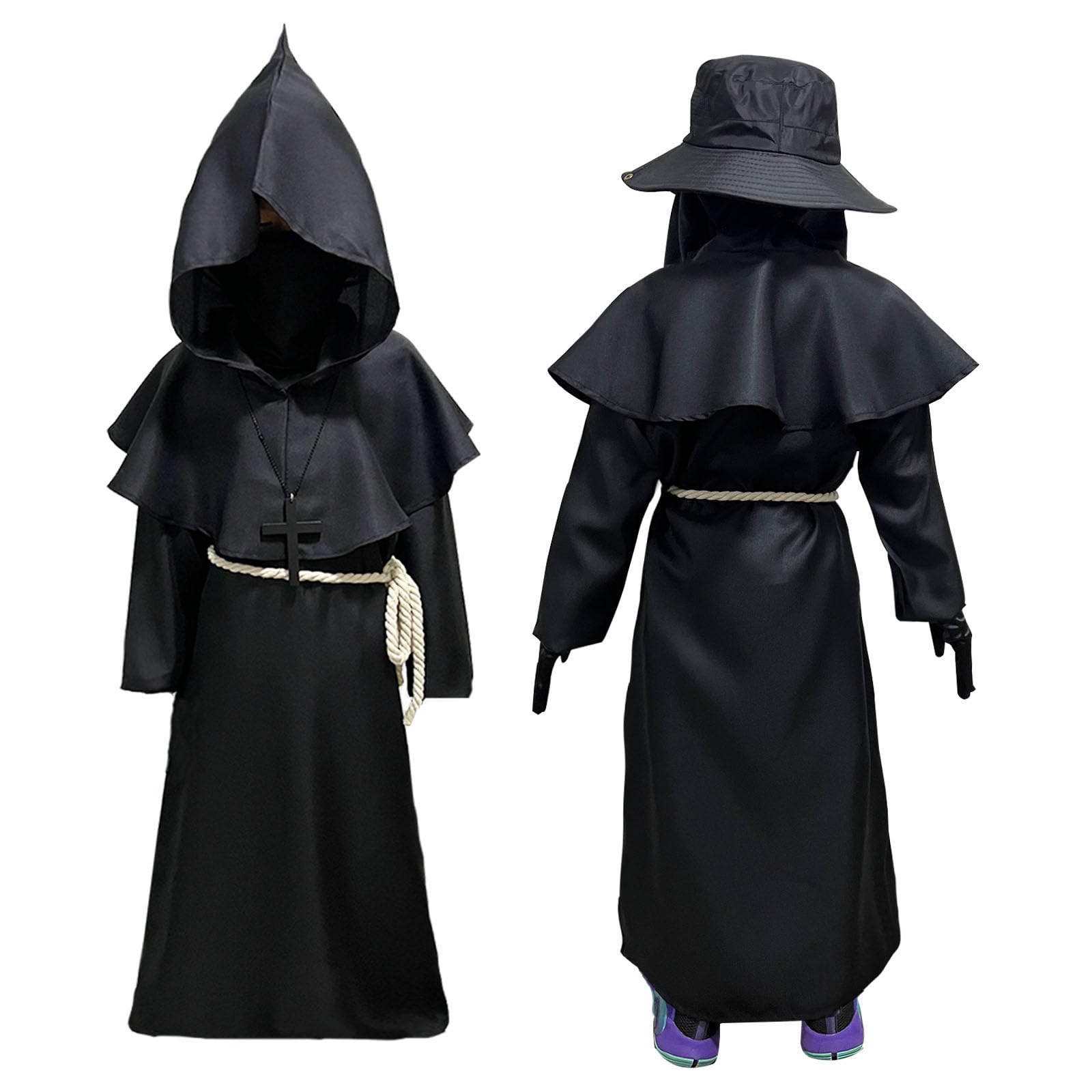 - 【Authentic Plague Doctor Look】 The kids halloween costume set includes a hat, a ski mask, a leather plague mask, a robe with hood, a wooden cross necklace, gloves, and a skull staff, set 7 in 1 scary halloween costumes for kids