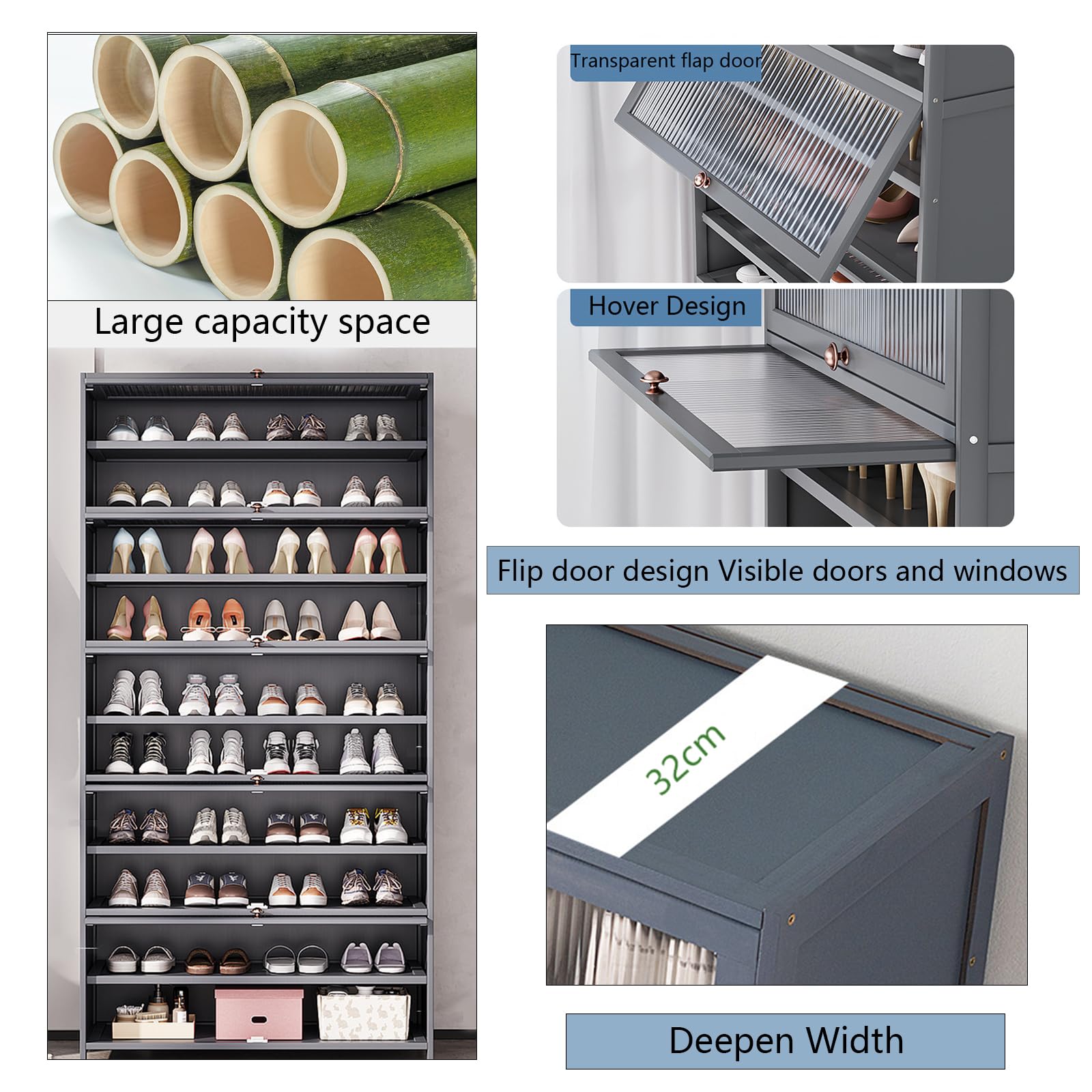 - 【Multi-purpose Design】: This multi-functional shoe cabinet is suitable for anywhere, whether it is an entrance, corridor, or living room. It is very suitable for organizing shoes and bags, and can be used as a shoe rack and a multi-functional storage unit