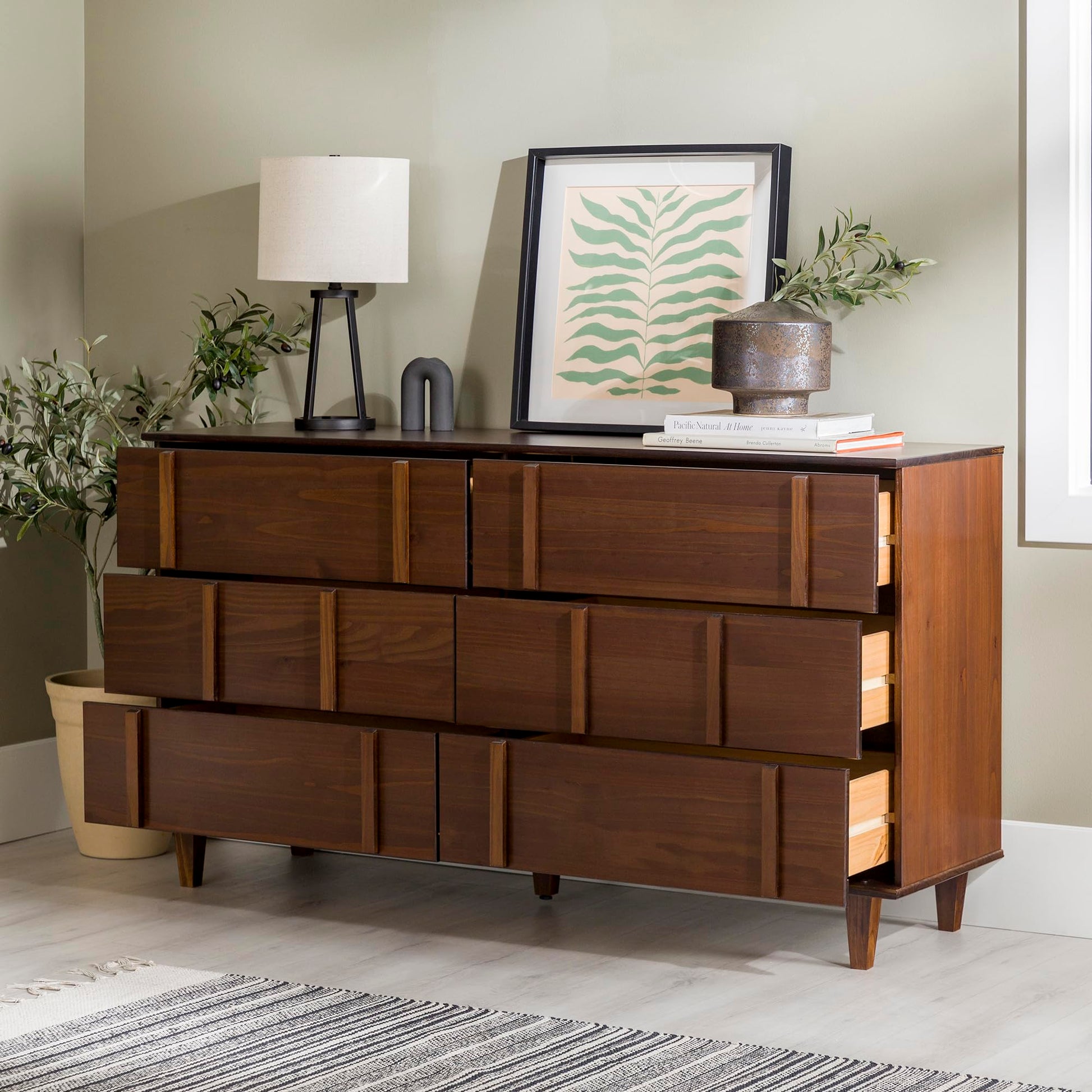 Walker Edison Contemporary Detailed 6-Drawer Solid Wood Dresser, 60 Inch, Walnut