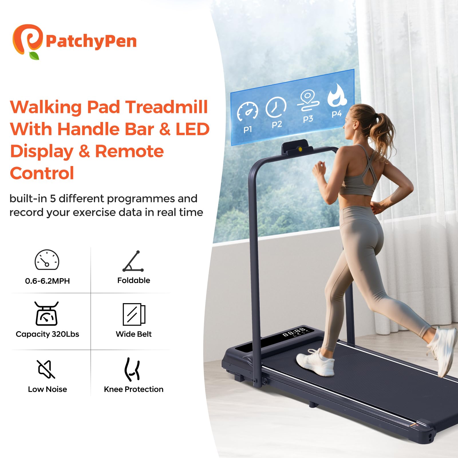 - 【Anti-Slip Runing Belt & Shock Reduction System】PatchyPen treadmills for home small is designed walking mat provide a 15.75"*35.43" spacious running area with a 6-layer anti-slip belt, 10 silicone shock absorbers and 2 shock absorb cushions, it helps to shock absorbing and noise reducing, making your running quieter and more stable, it reduces the impact on your body, ensuring knees, muscles and joints protection during running