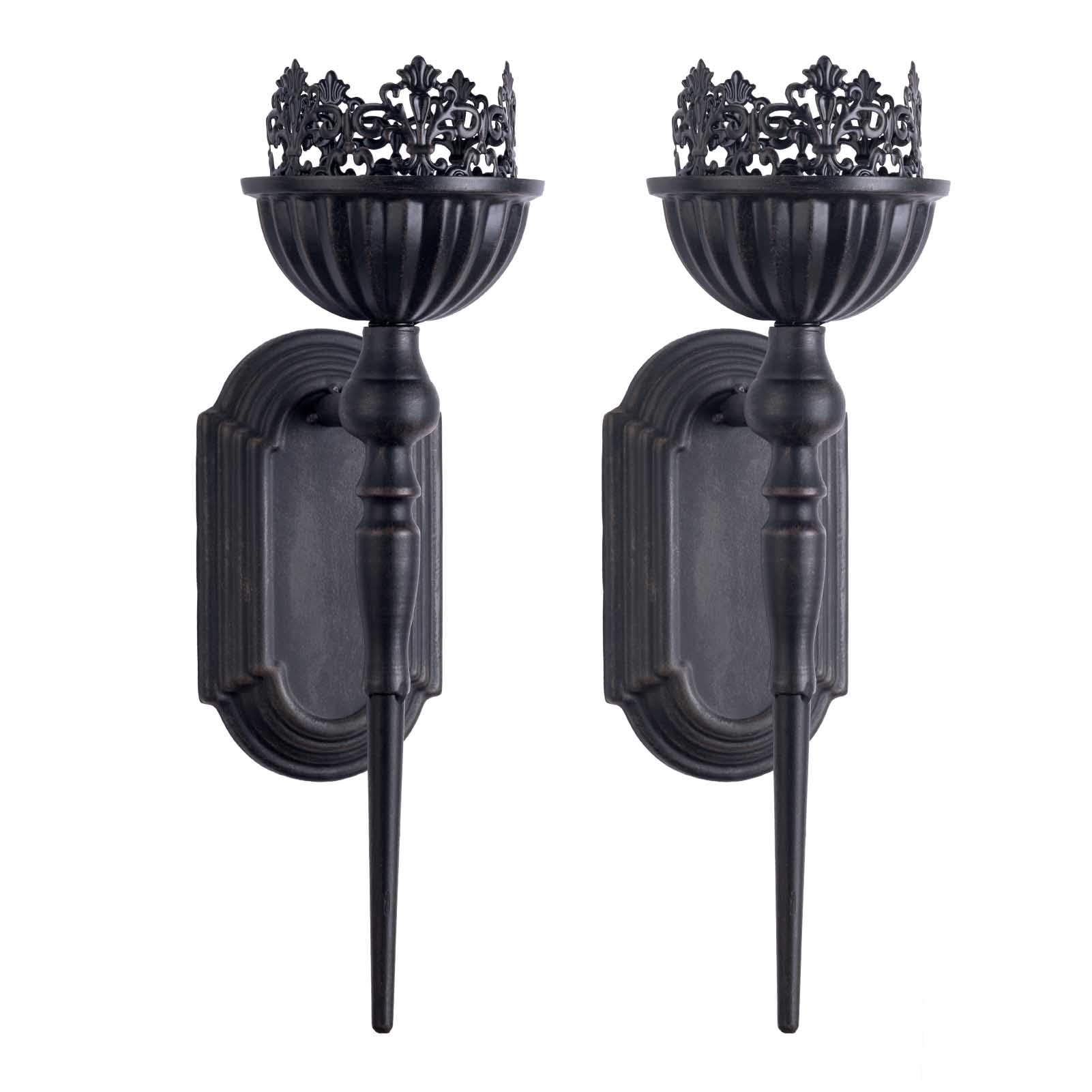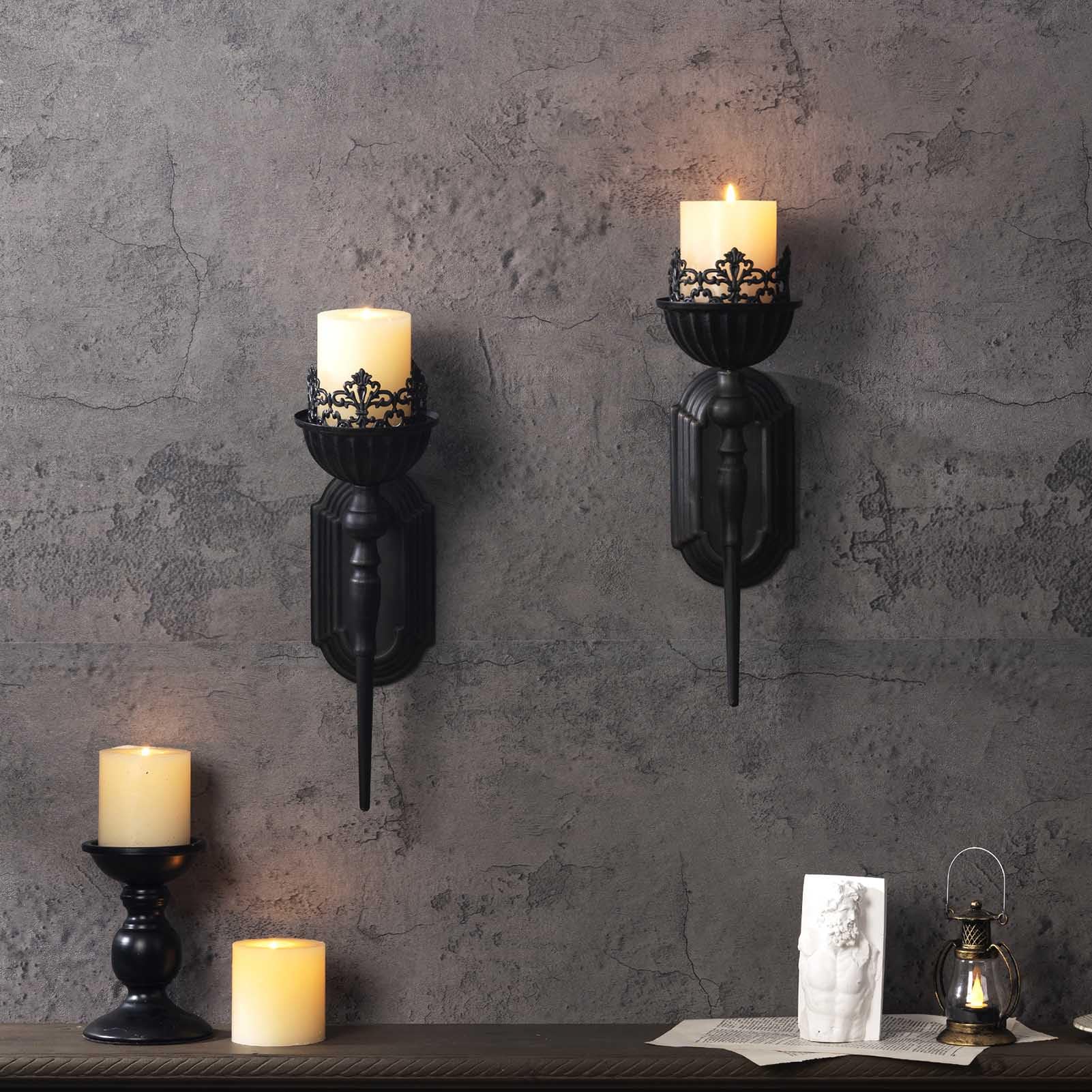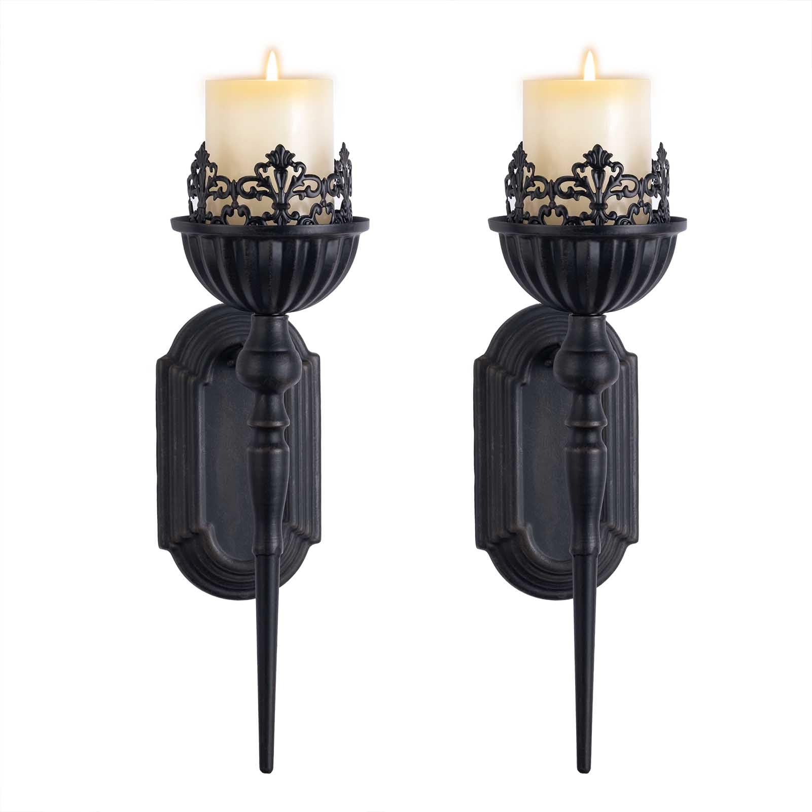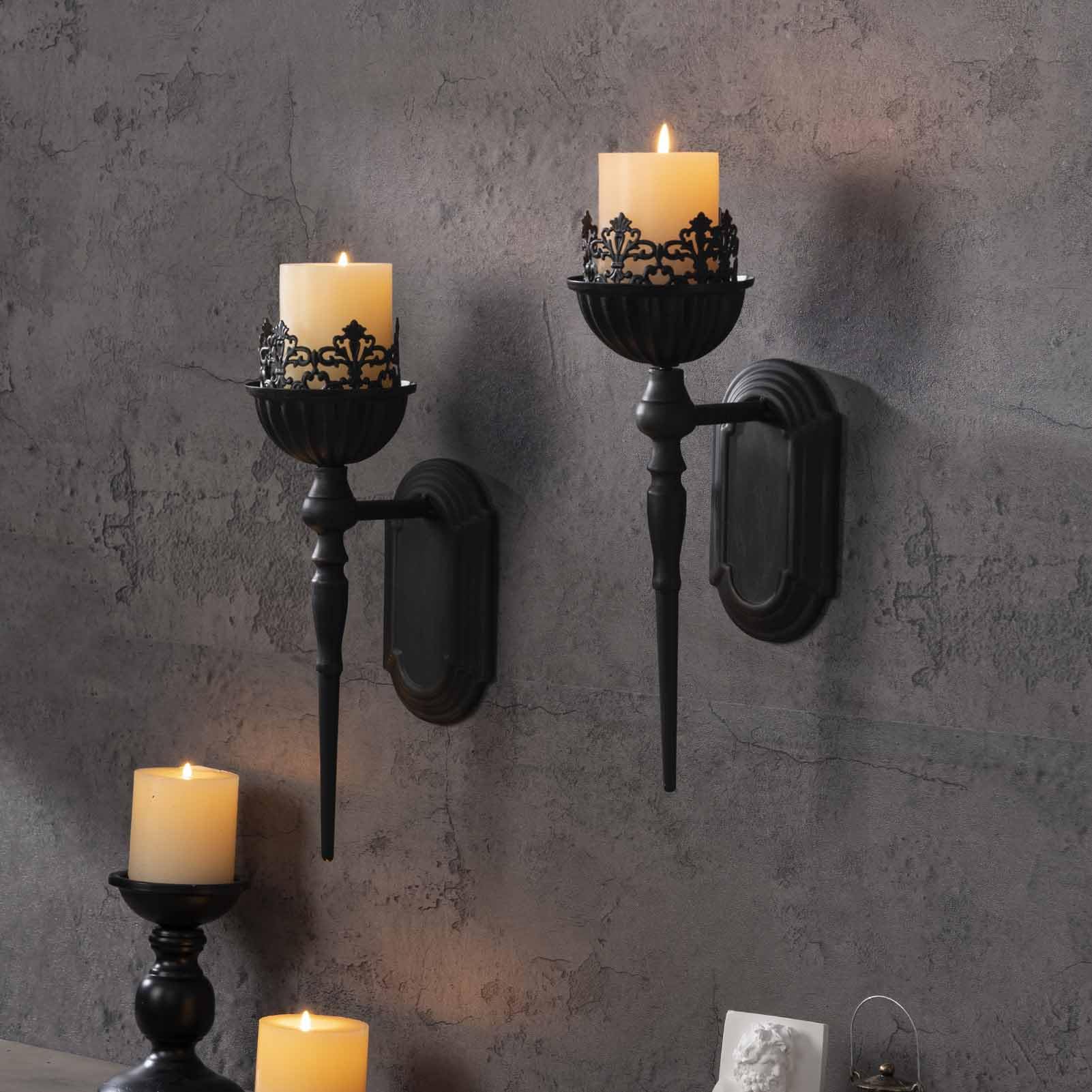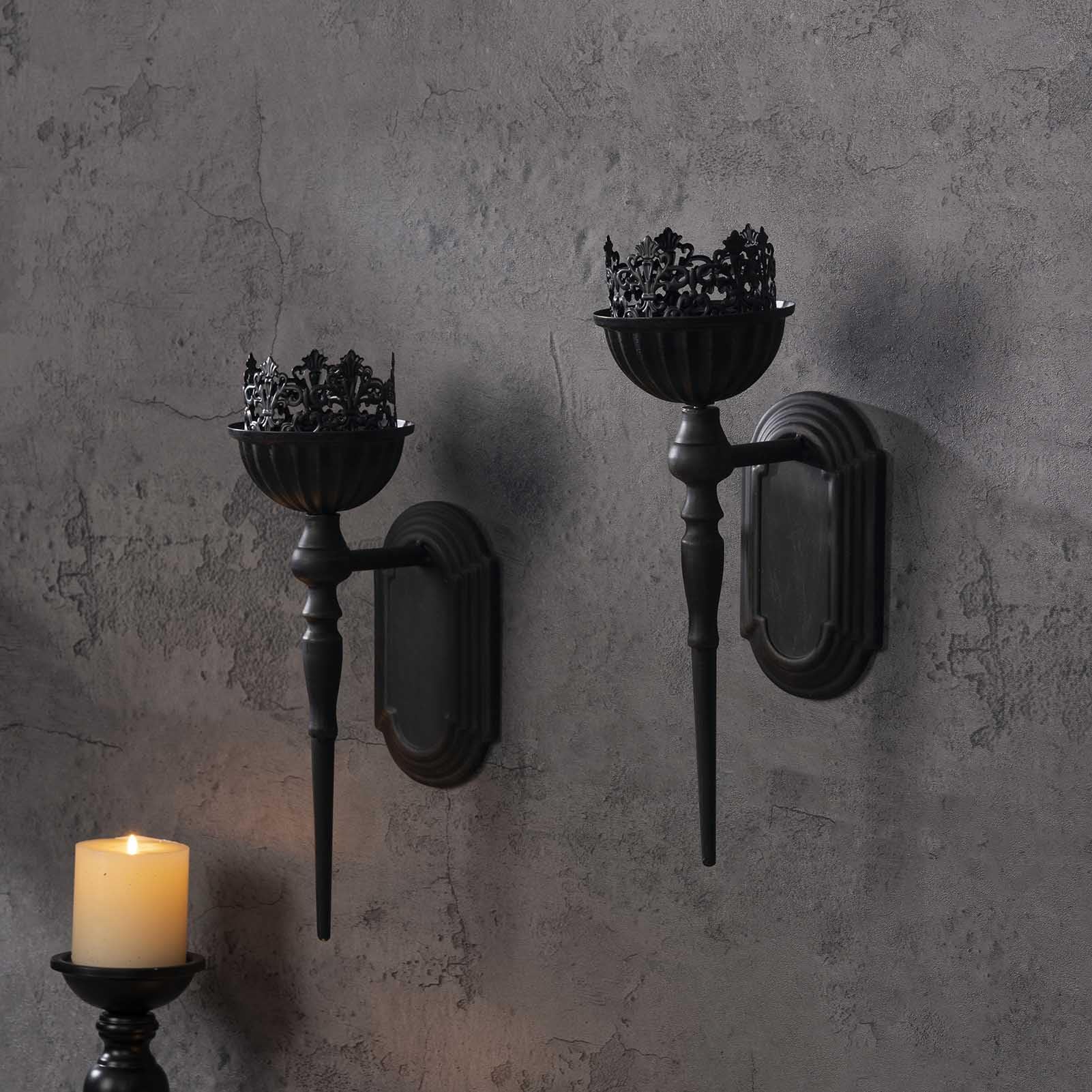 - BLACK CANDLE SCONCE- Add an eye-catching look to any space with this Rustic shape pair of wall sconce candle holders.