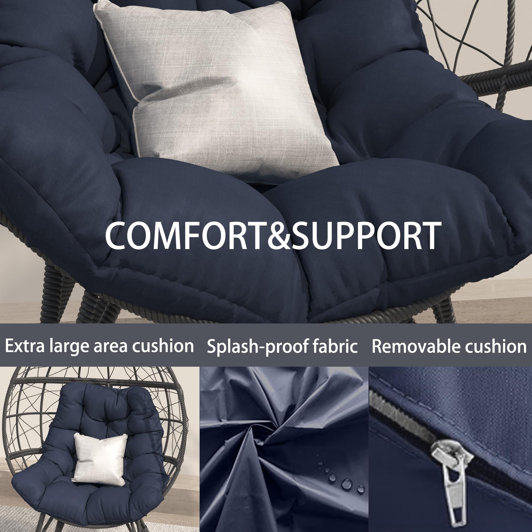- Embedded seats wrap around your body and mind:Our oversized egg chair has spacious seats and cushions that will never disappoint you. The removable and washable oversized cushions are made of high rebound soft sponge and splash proof olefin fabric, placed at the bottom of the egg chair with stand, allowing you to experience immersive embedded comfort