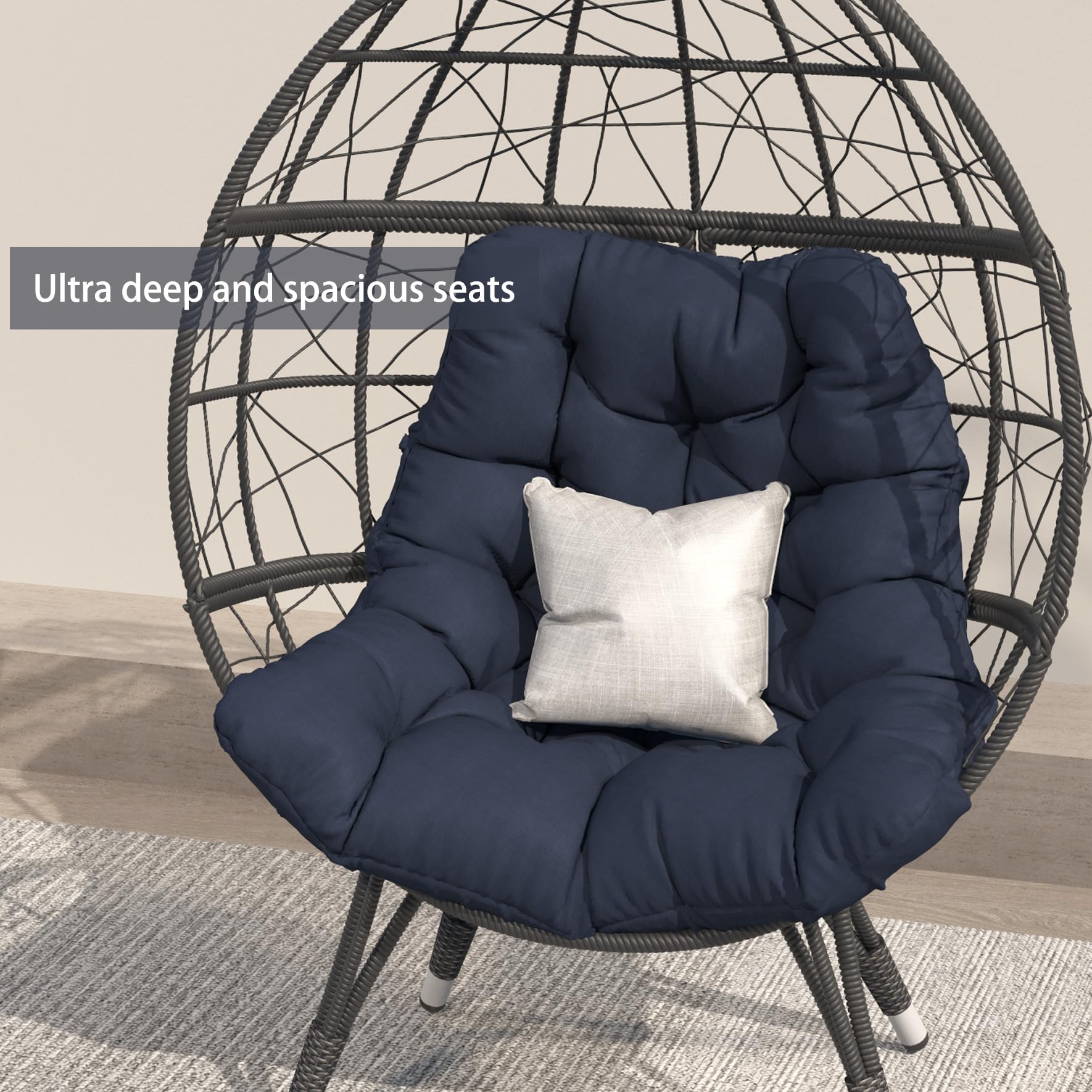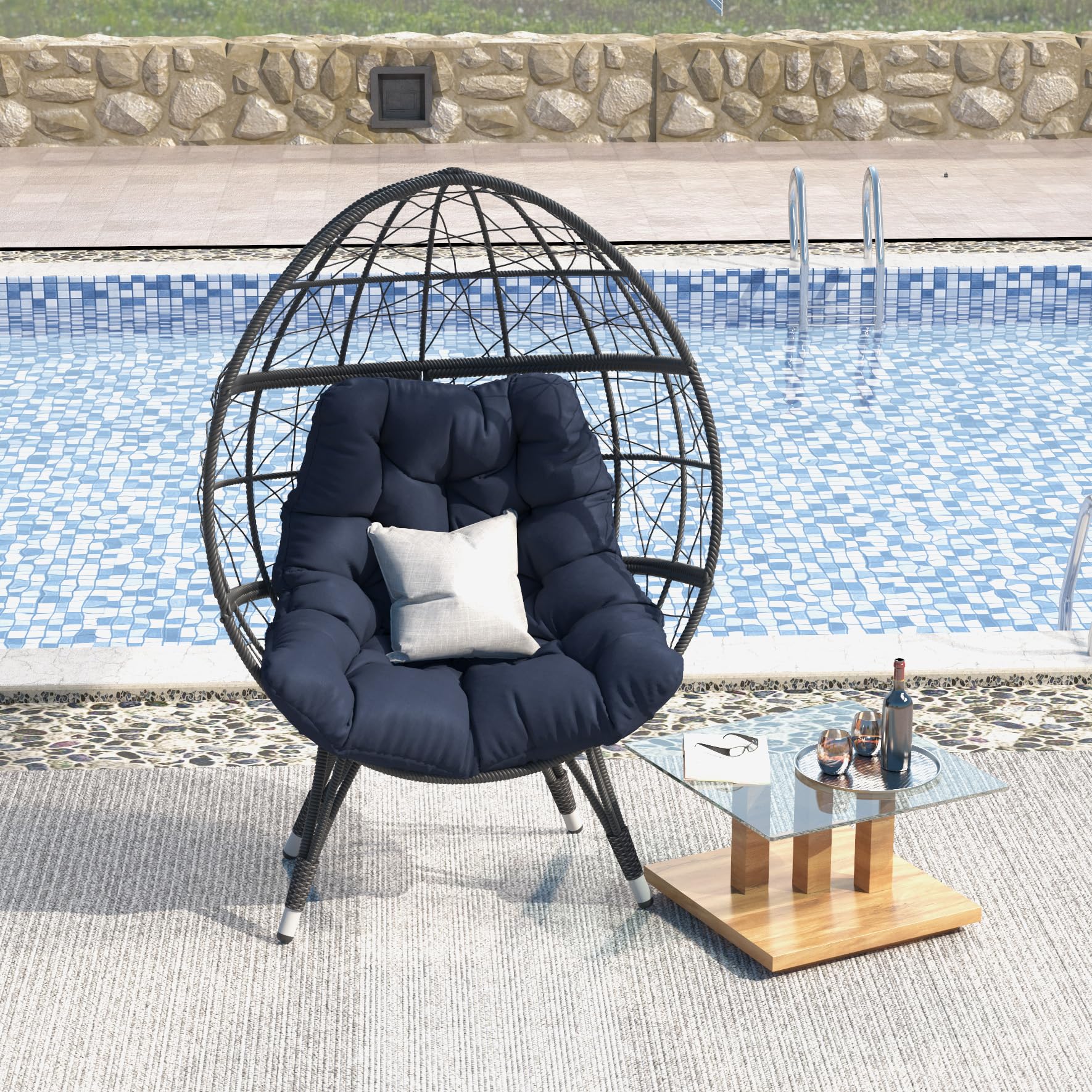 wallowsun Oversize Wicker Egg Chair, Outdoor Indoor Egg Basket Lounge Chair w Large Cushion for Patio Backyard Garden Living Room (Blue)