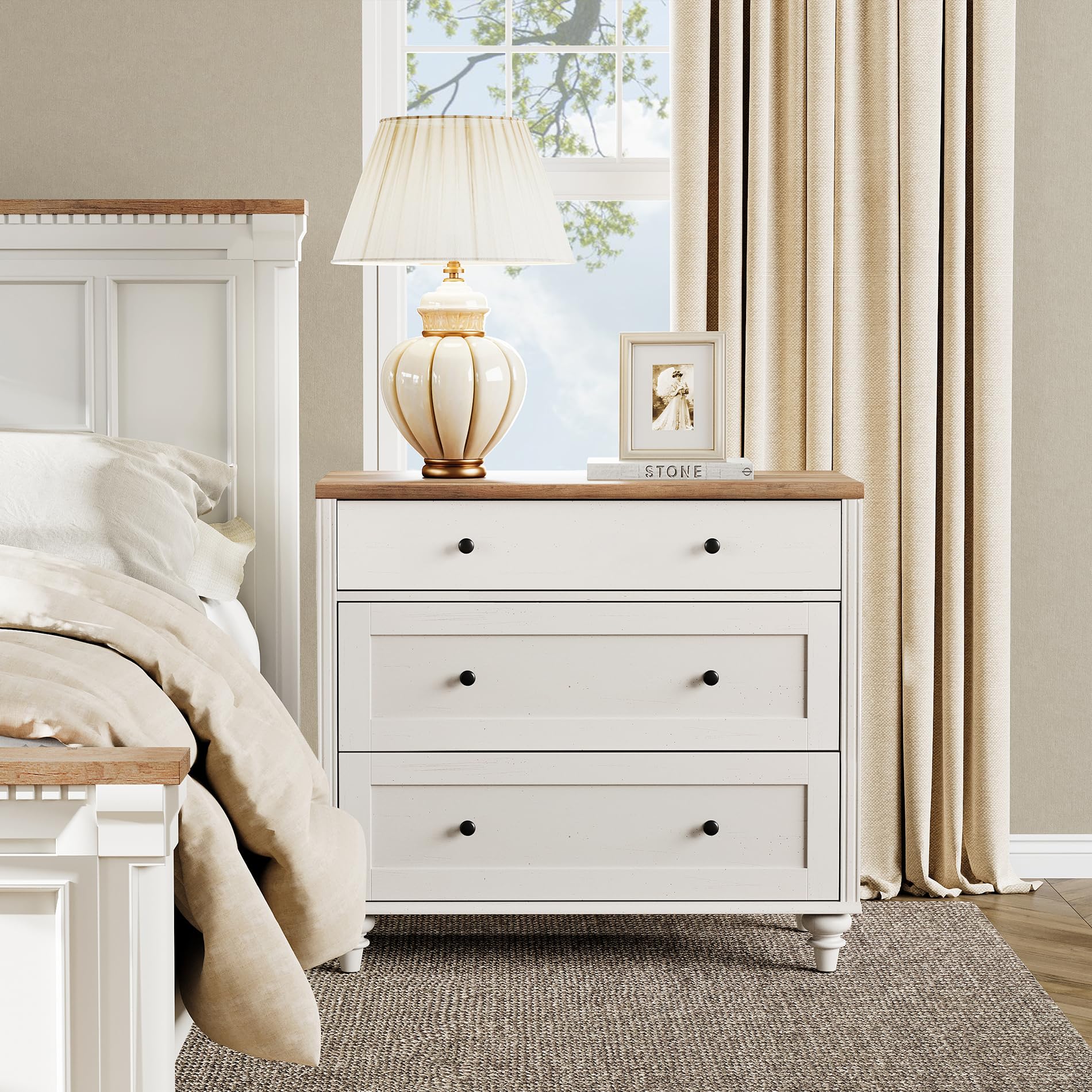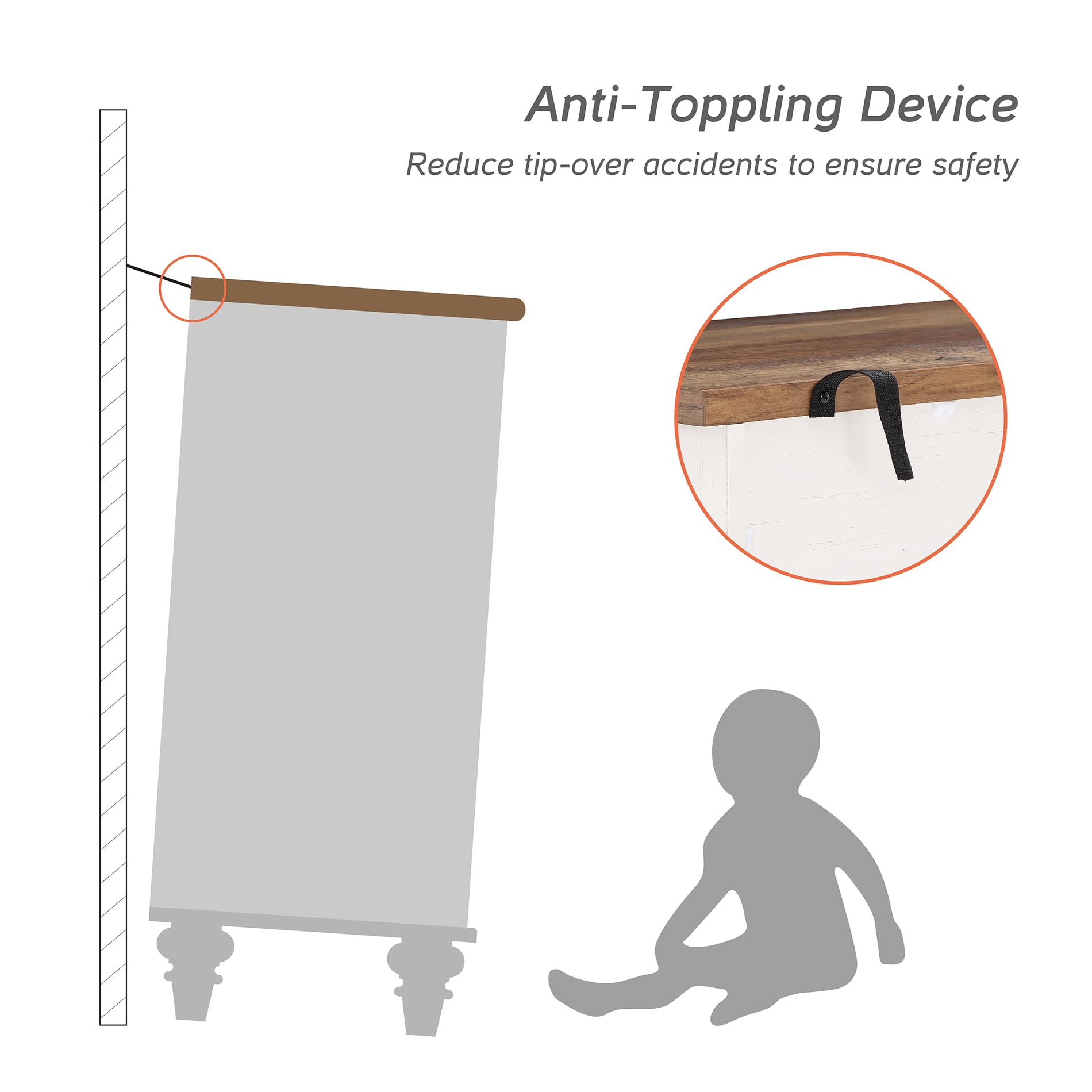 - 【Reliability&Humanized Design】 The dresser for bedroom with solid wood round gourd furniture legs add beauty and ensure the stability of the storage cabinet.And an additional anti-tipping kit is also included for added safety. Total Weight Capacity: 88 lbs.The distance between the bottom plate and the floor is large enough so that the robot vacuum cleaner can pass freely.