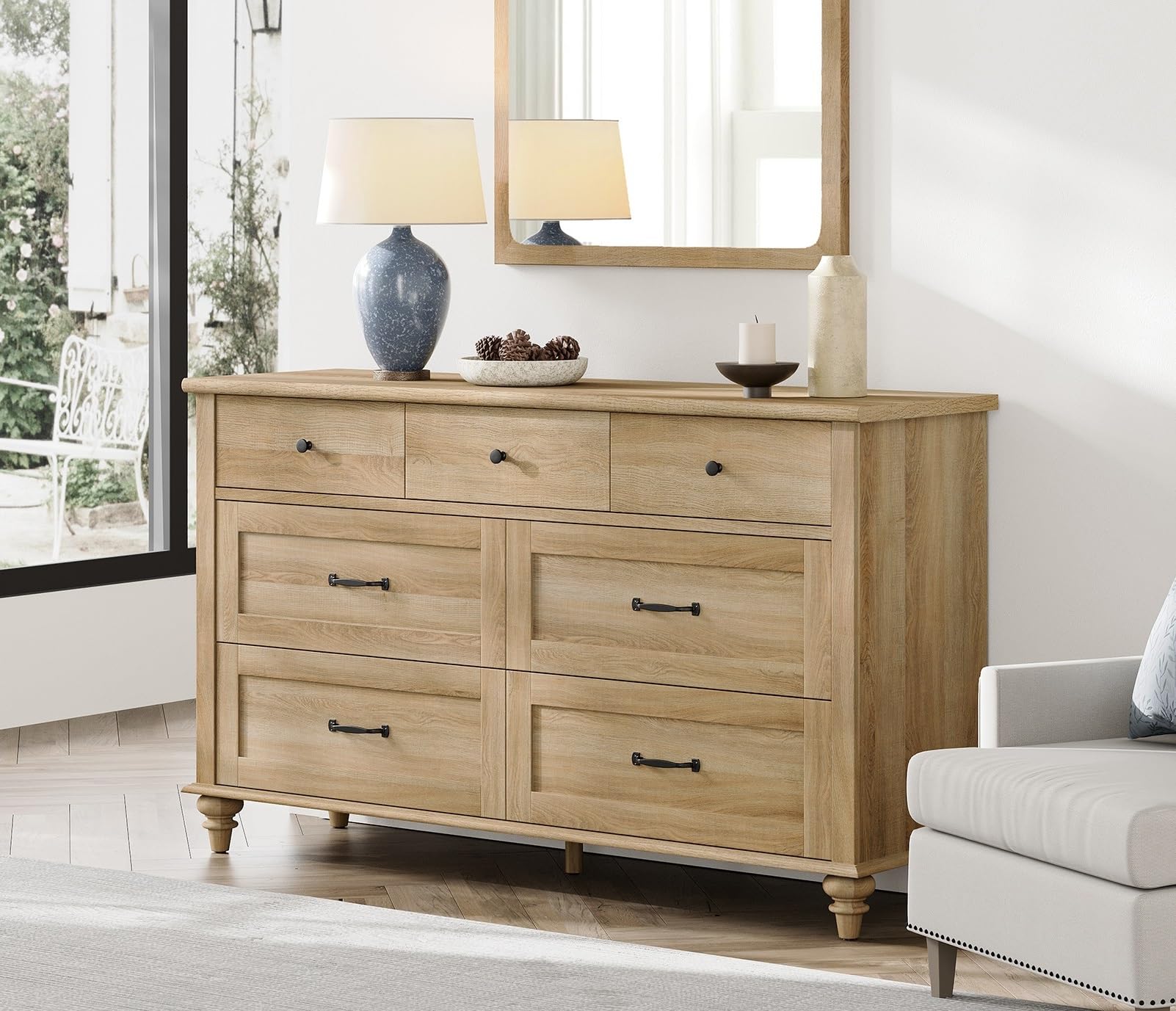 - 【Multi-purpose Dresser】The oak dresser with distressed surface and natural texture is a perfect combination of retro and mid century style, adding character and charm to your home. It can be used as a bedroom dresser, kids dresser, nursery dresser, entryway table or TV stand for 60" TV.