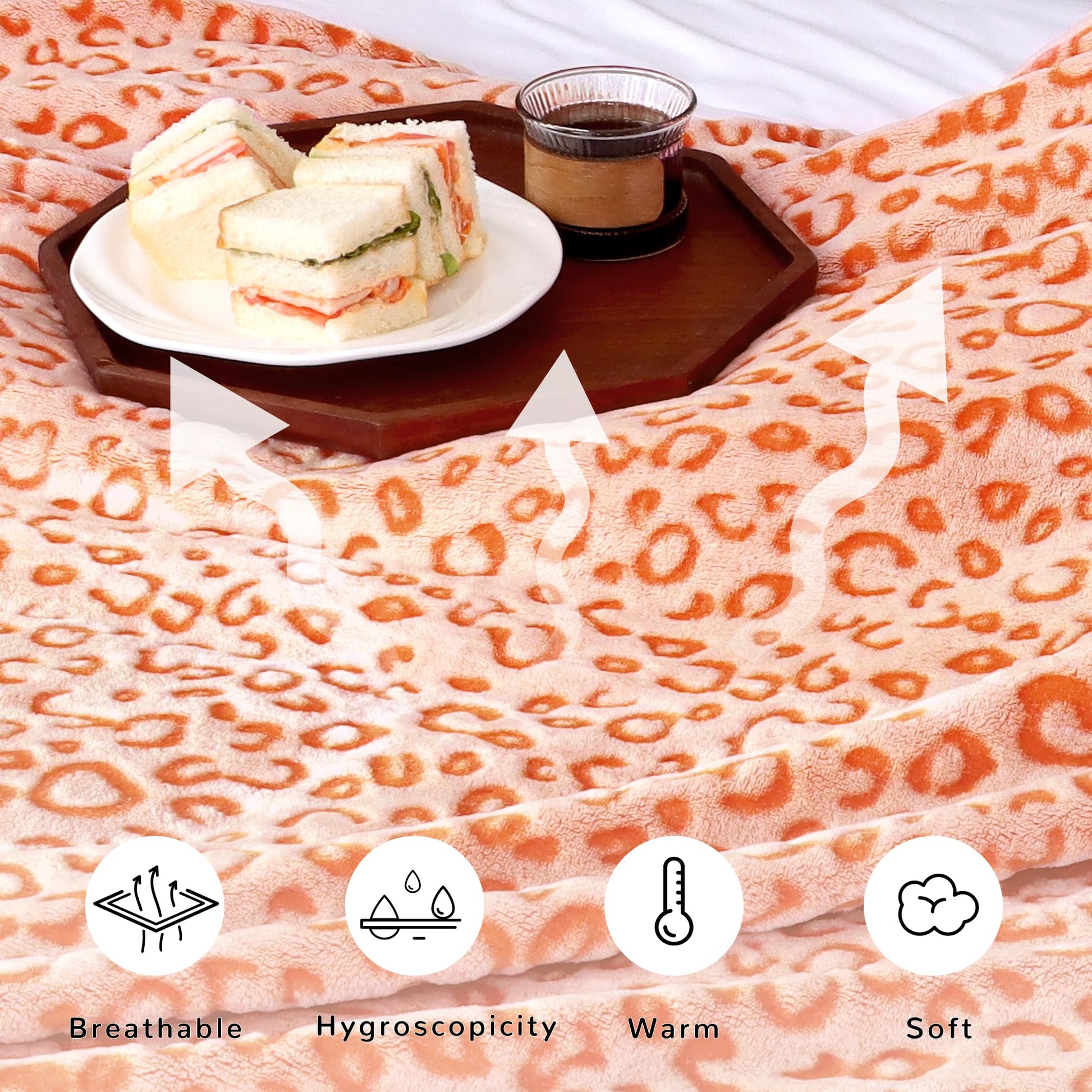 Warm Orange Blanket Leopard Print Throw Blanket Soft Fleece Blankets Home Decor Stuff for Couch Bed Sofa