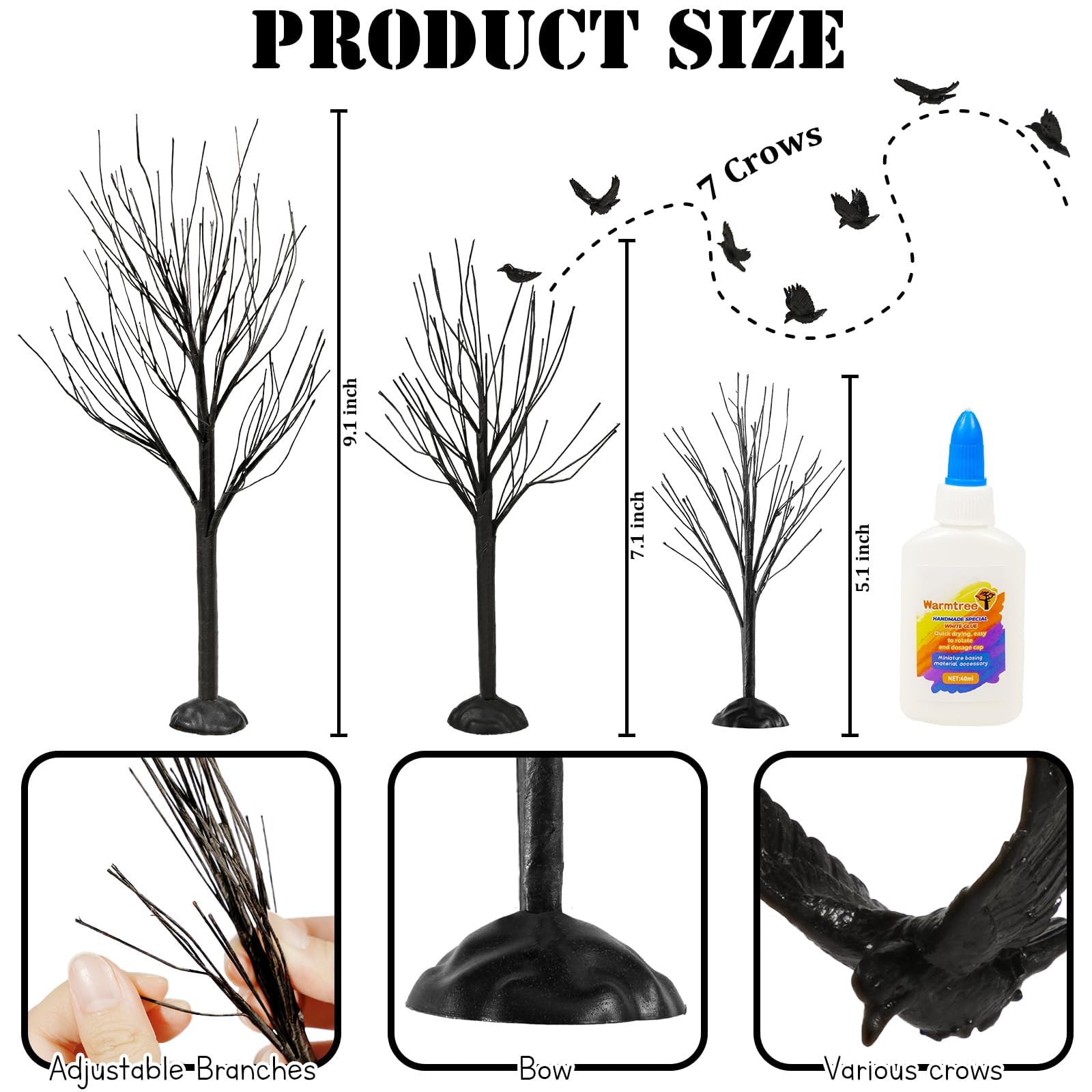 Warmtree 6 Pcs Halloween Village Trees Mini Decor Tree Artificial Tabletop Branch Trees, Halloween Village Accessories with Crows Figurine for Holiday Home Garden Office Festival Decor