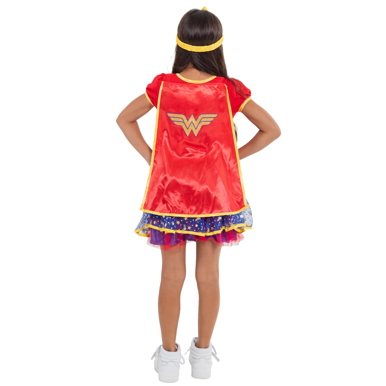 WARNER BROS Justice League Wonder Woman Toddler Girls Cosplay Tulle Costume Dress Cape and Headband 3 Piece Set 4T