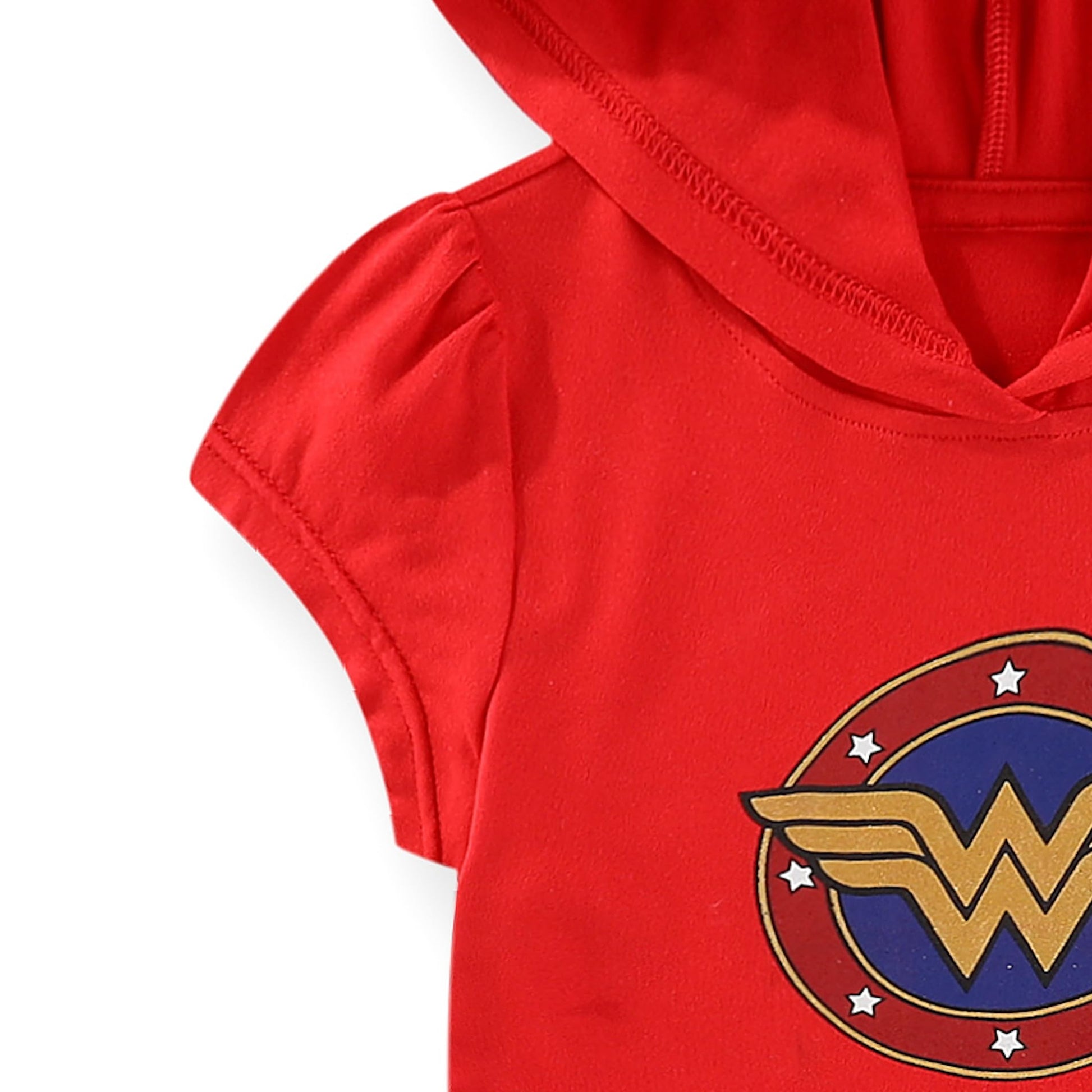- Unleash your little girl inner hero with our Officially Licensed Warner Bros Wonder Woman Girls Cosplay Hooded Tulle Dress for Toddler and Big Kids.