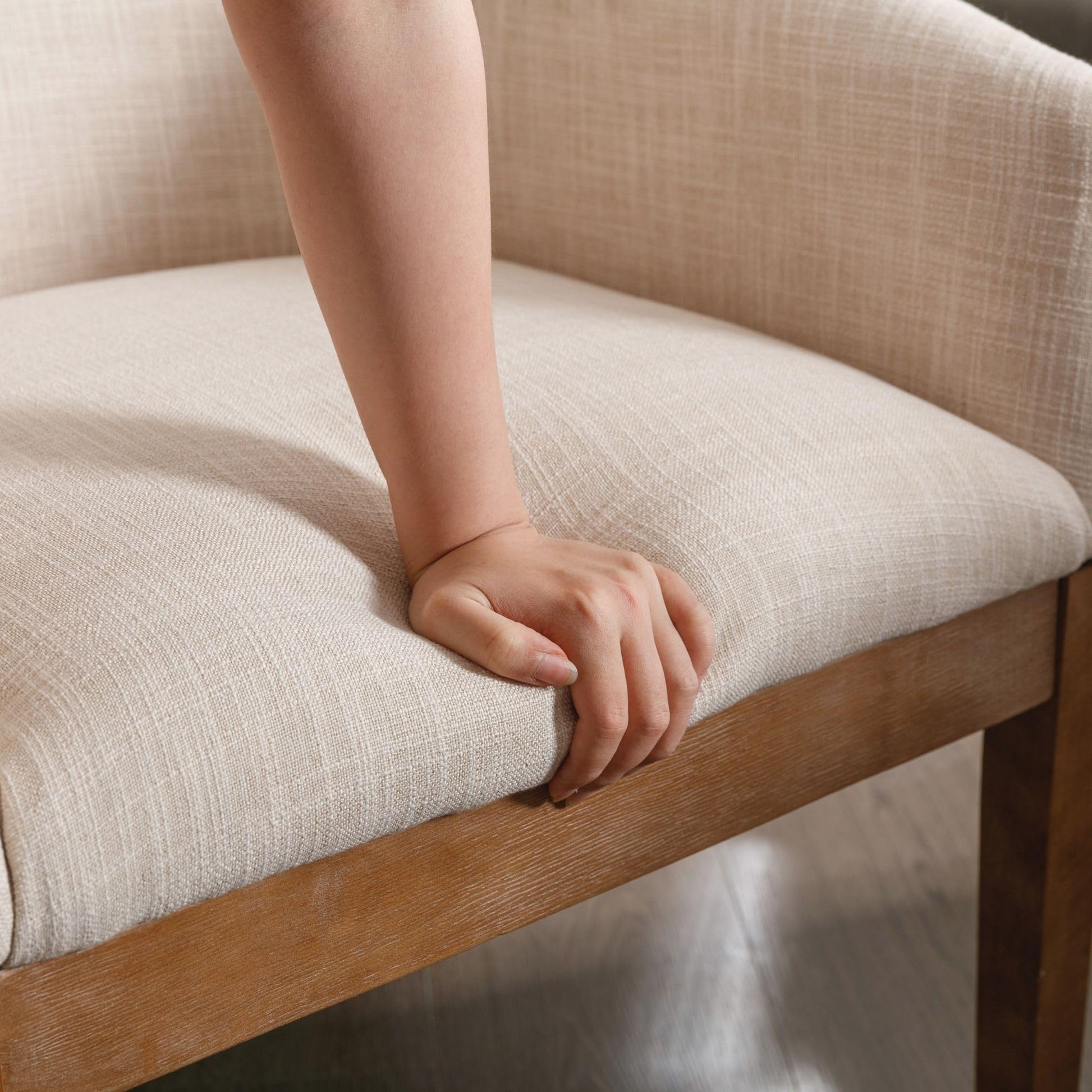 - ✔Comfort and Durability: The arm chairs are constructed with angle blocks and supported by environmentally-friendly wooden legs, ensuring both comfort and sturdiness. Crafted from solid hardwood, each chair (net weight: approx. 25 lbs) delivers outstanding structural integrity. Engineered to prevent wobbling throughout its extended service life.