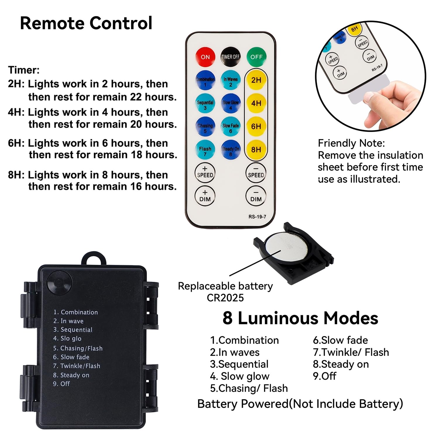 - Timer Function: Built-in 4 kinds of timer(2H: 2 hours ON, 22 hours OFF ; 4H: 4 hours ON, 20 hours OFF ;6H: 6 hours ON, 18 hours OFF; 8H: 8 hours ON, 16 hours OFF), this cycle repeats itself and infinitum, no need to reset it everyday. If you do not want timer, just press the TIMER OFF via the remote